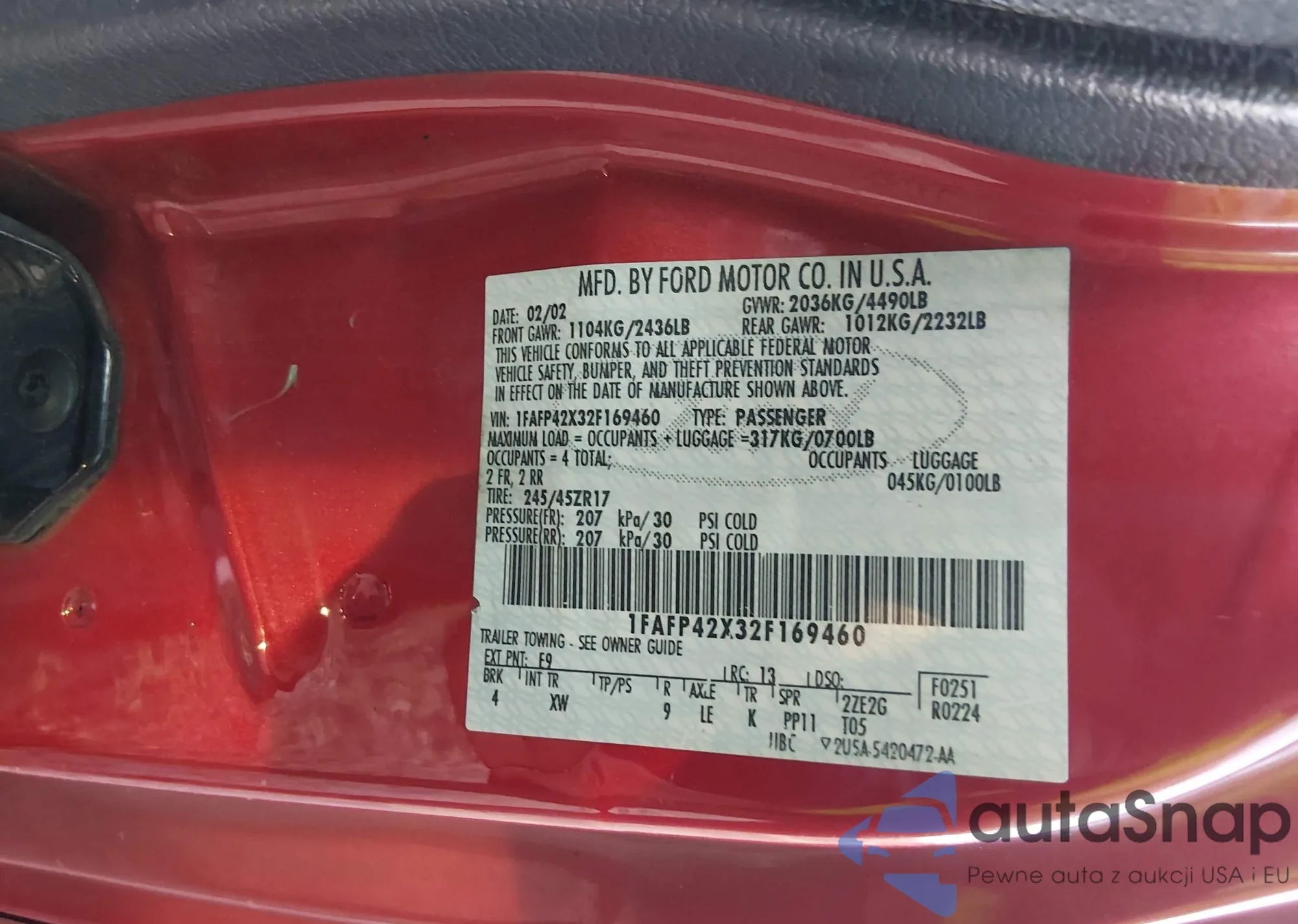 • VIN 1FAFP42X32F169460