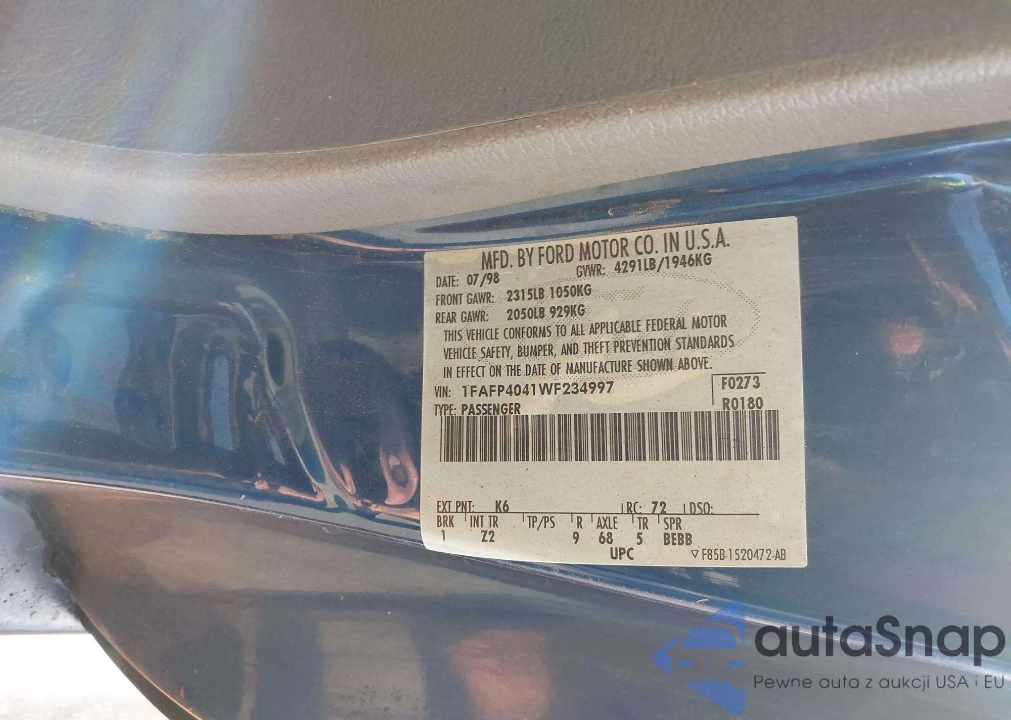 • VIN 1FAFP4041WF234997