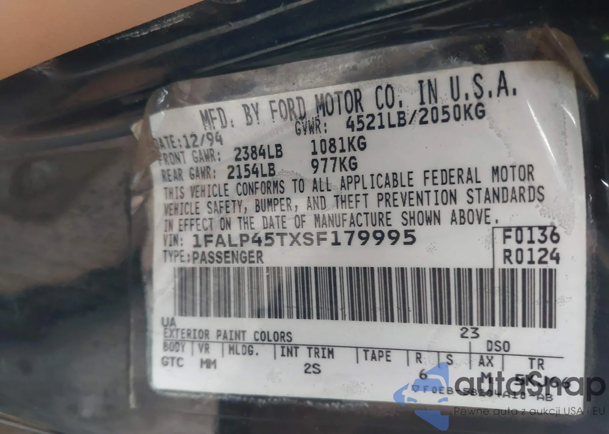 • VIN 1FALP45TXSF179995