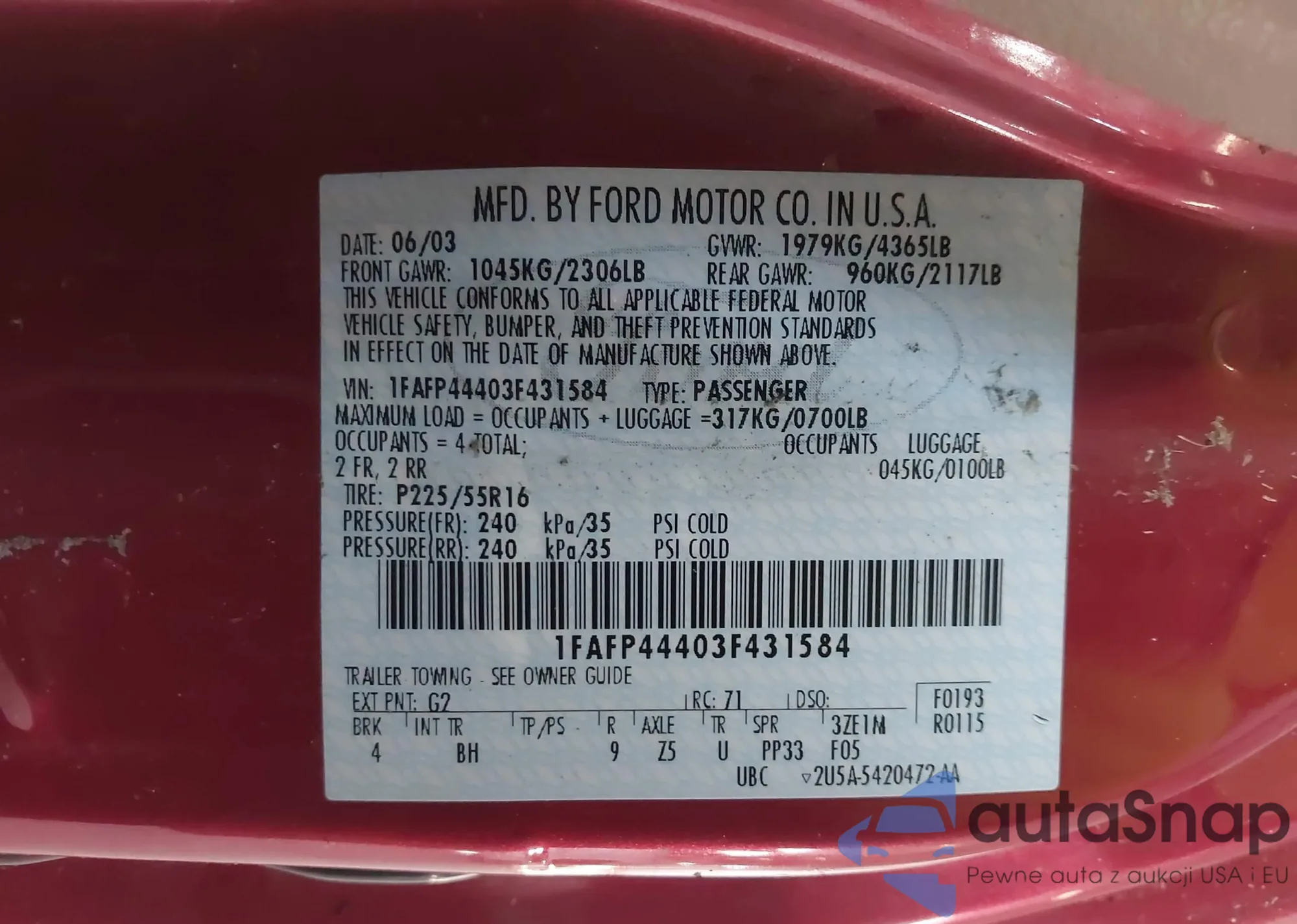 LOT: 44308675 VIN: 1FAFP44403F431584
