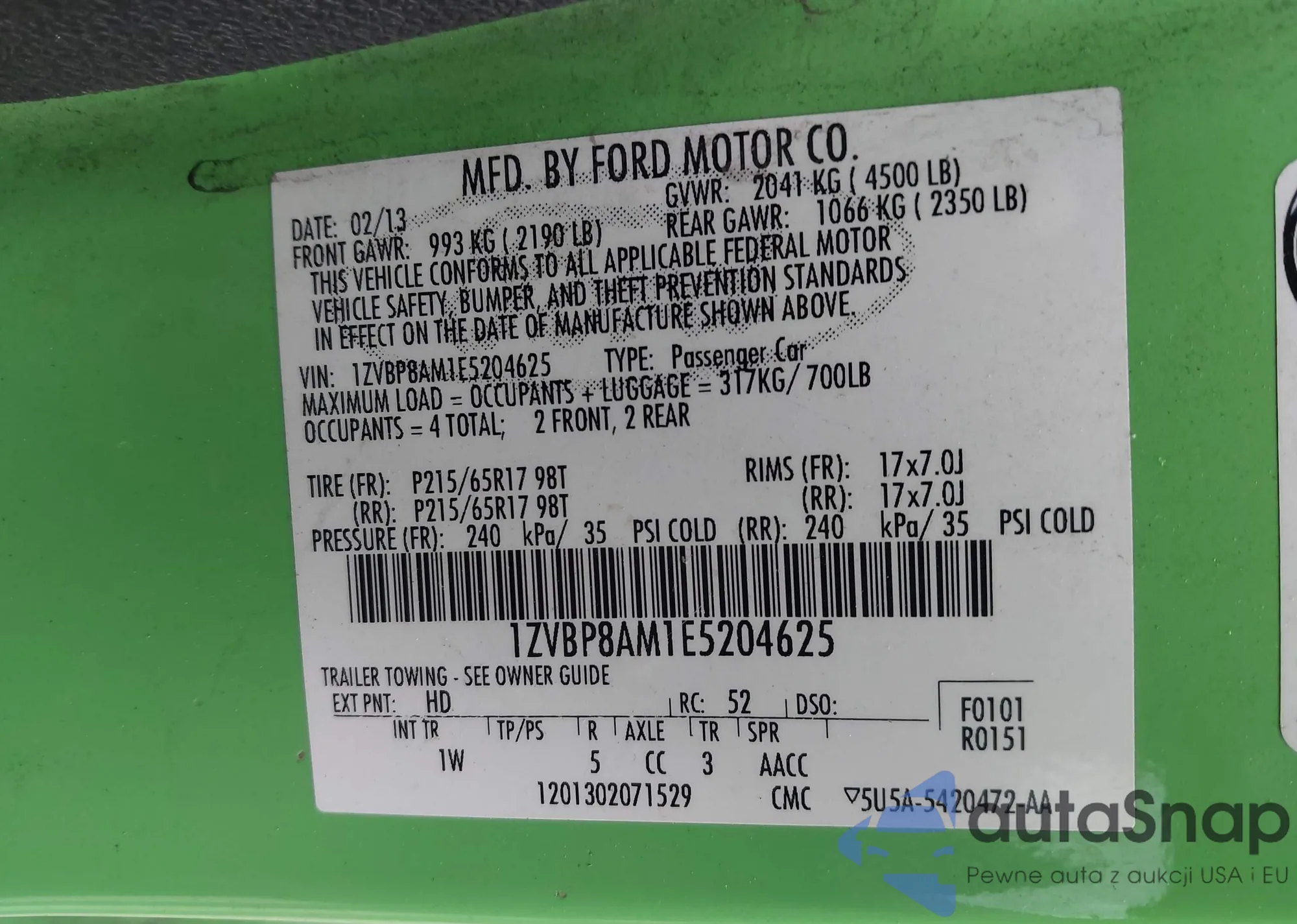 • VIN 1ZVBP8AM1E5204625