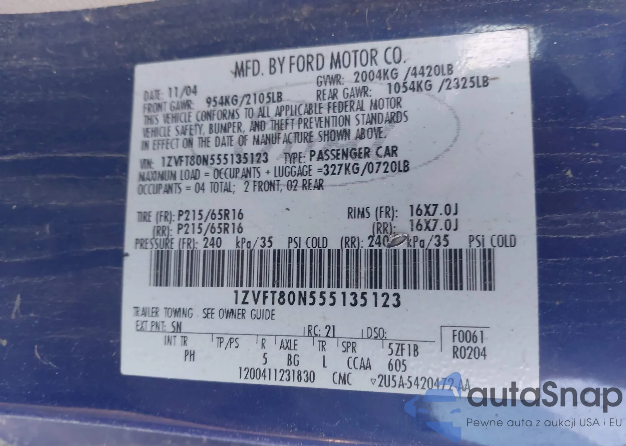LOT: 44147959 VIN: 1ZVFT80N555135123