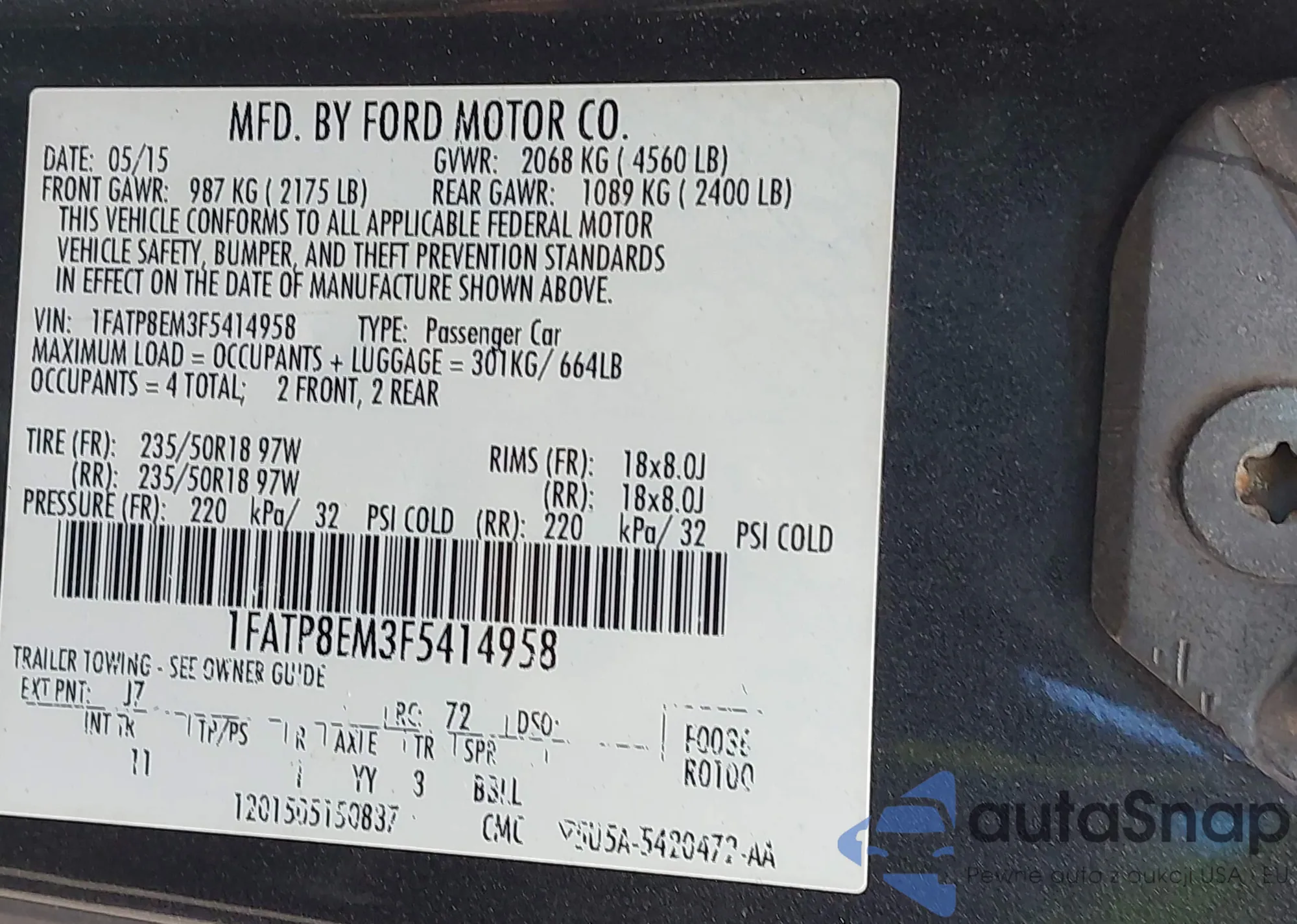 LOT: 44309314 VIN: 1FATP8EM3F5414958