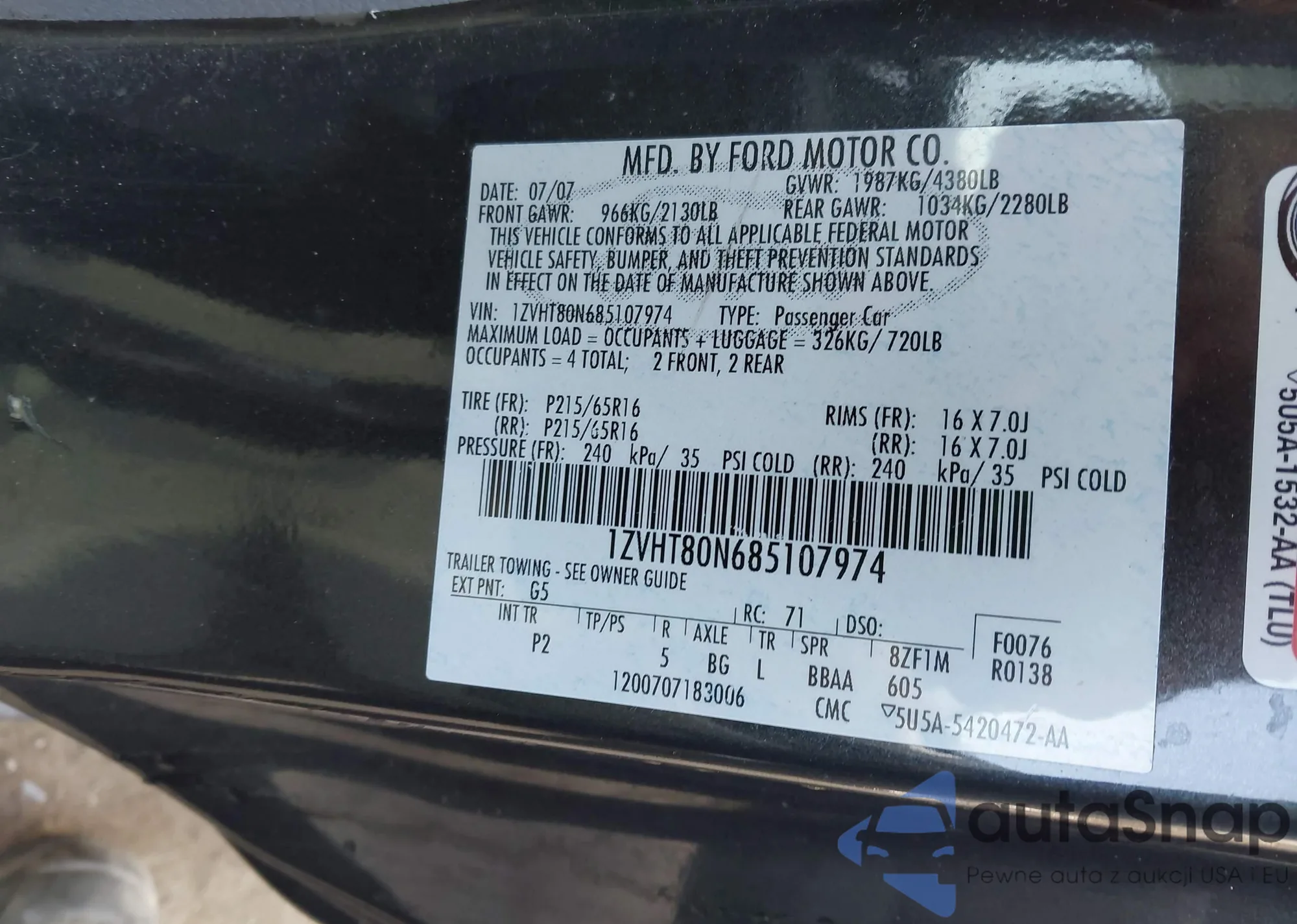 • VIN 1ZVHT80N685107974