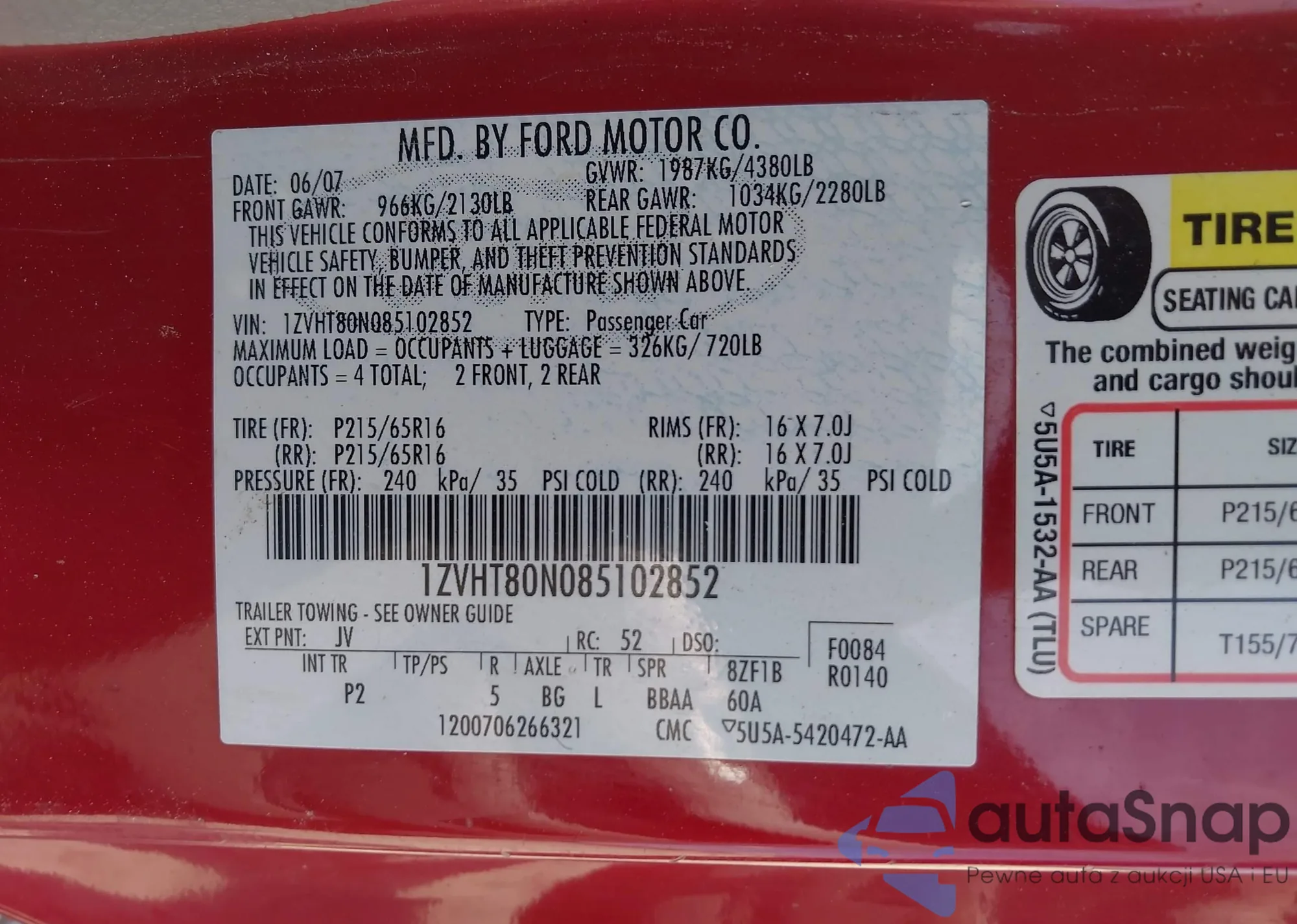 • VIN 1ZVHT80N085102852