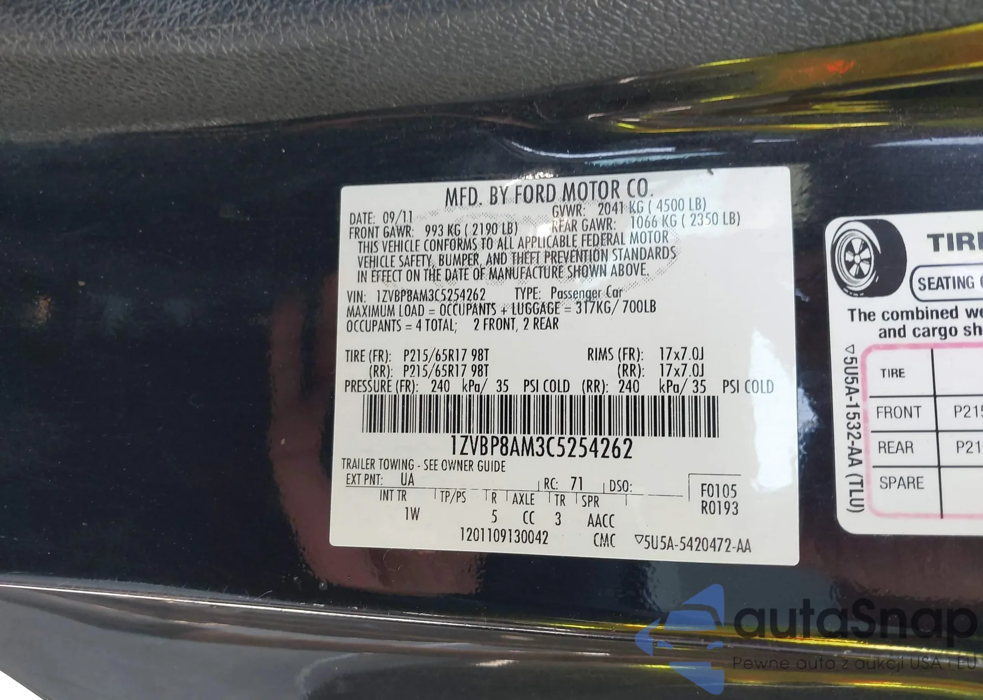• VIN 1ZVBP8AM3C5254262