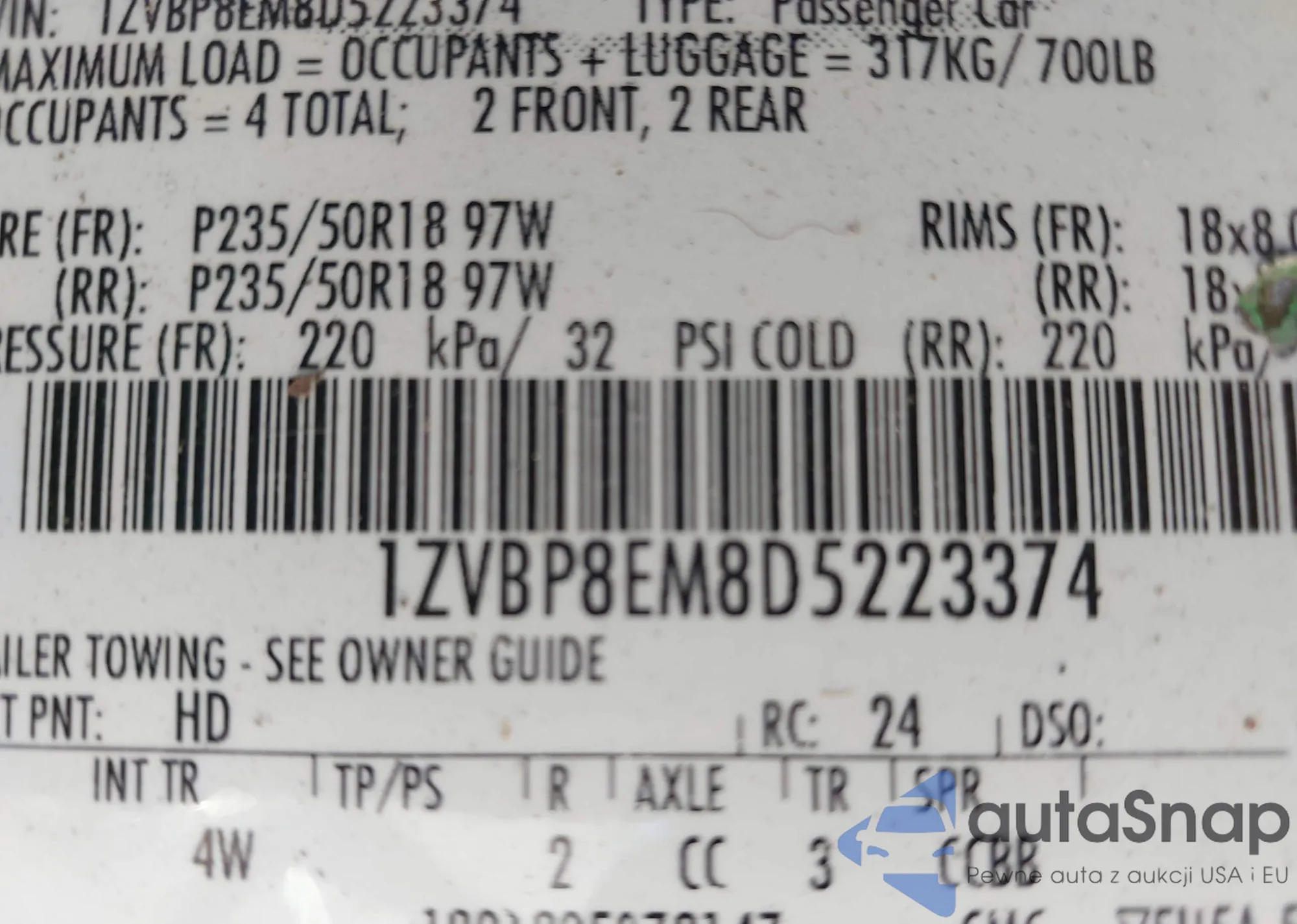 • VIN 1ZVBP8EM8D5223374