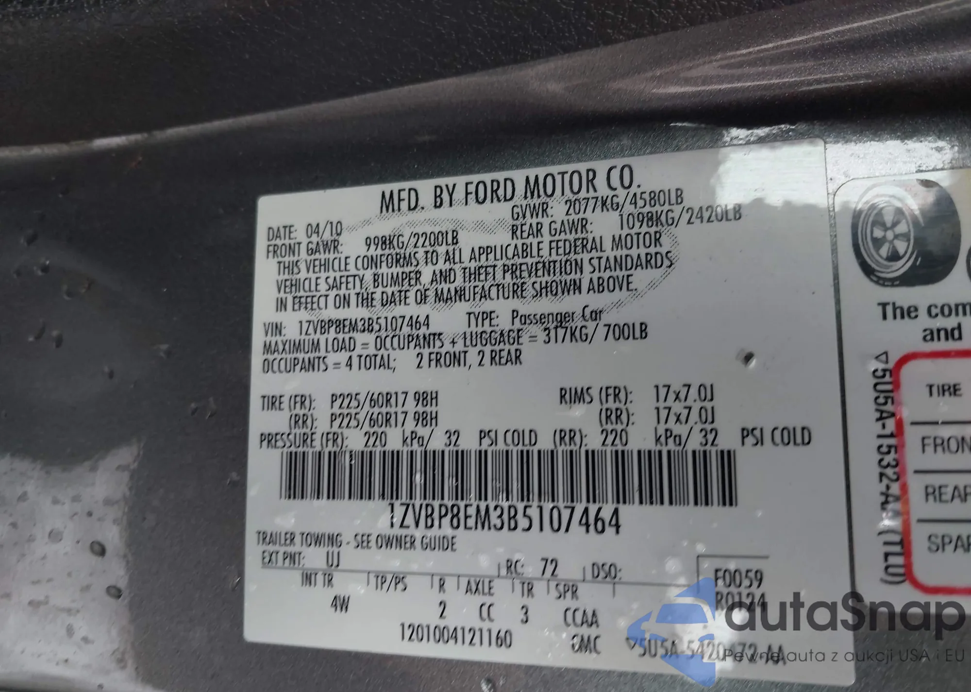 • VIN 1ZVBP8EM3B5107464
