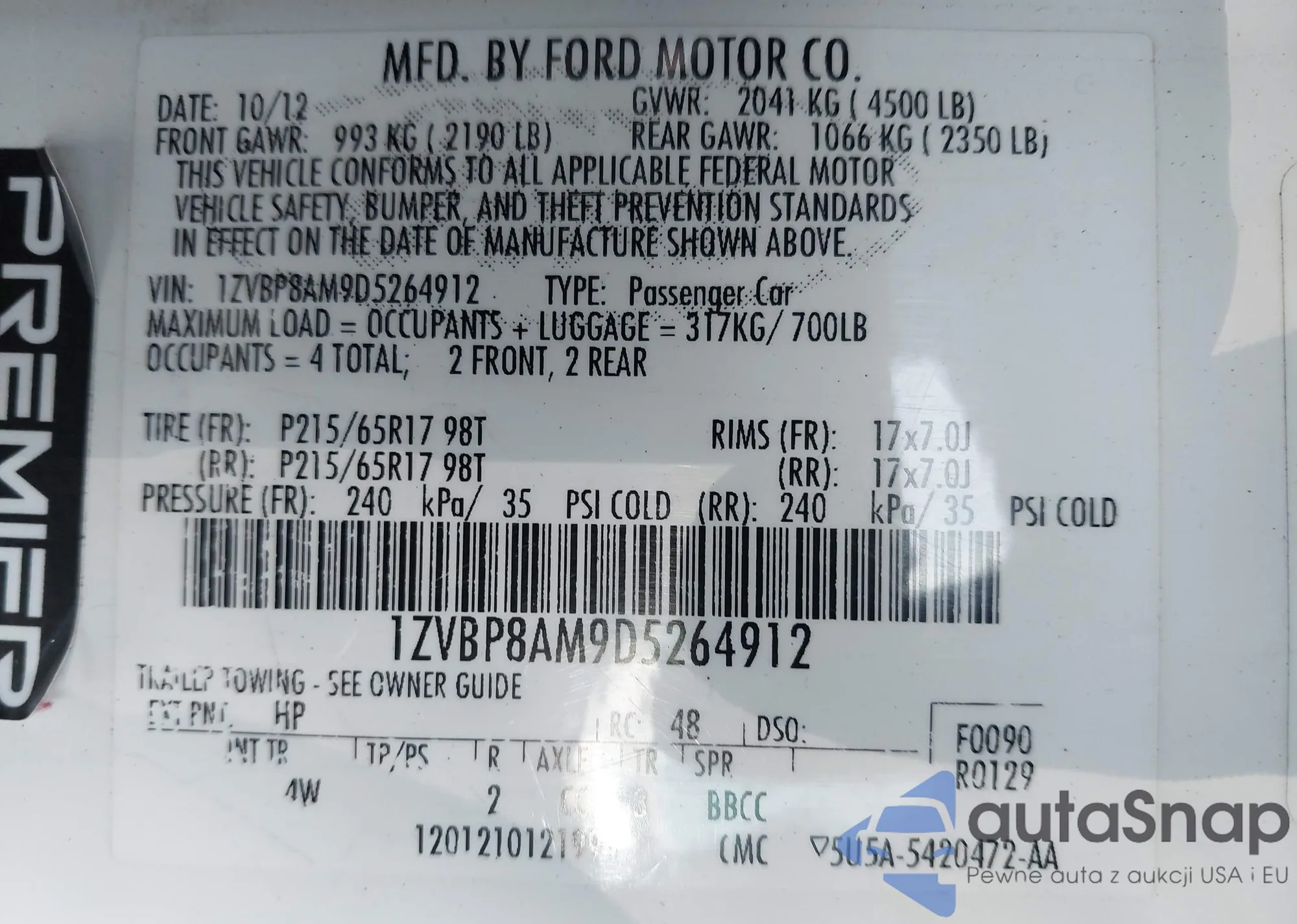 • VIN 1ZVBP8AM9D5264912