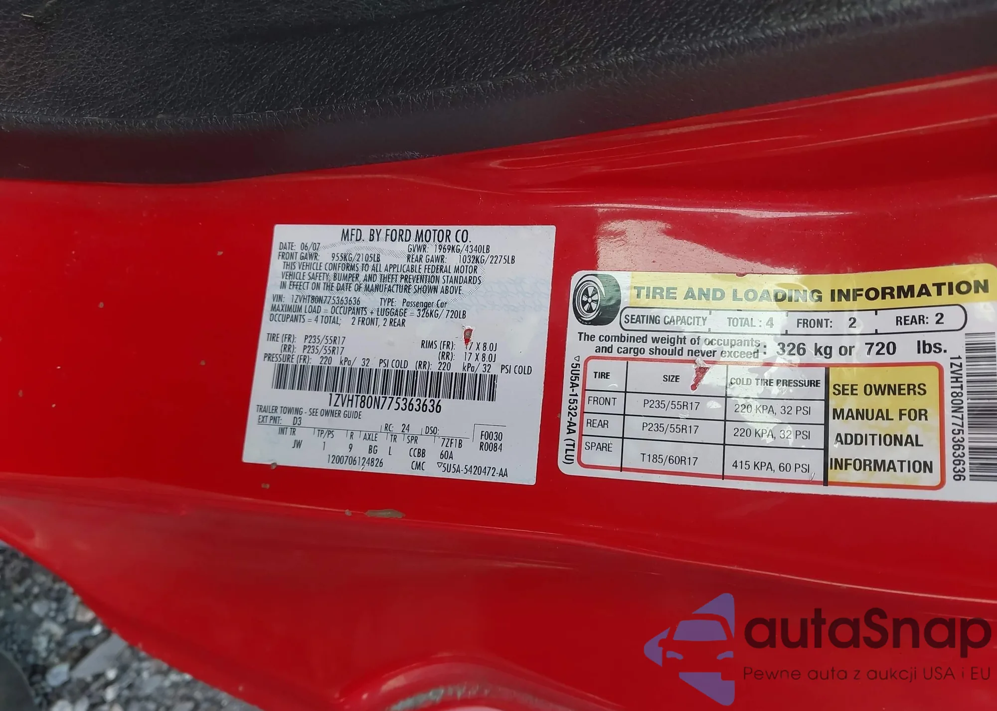 • VIN 1ZVHT80N775363636