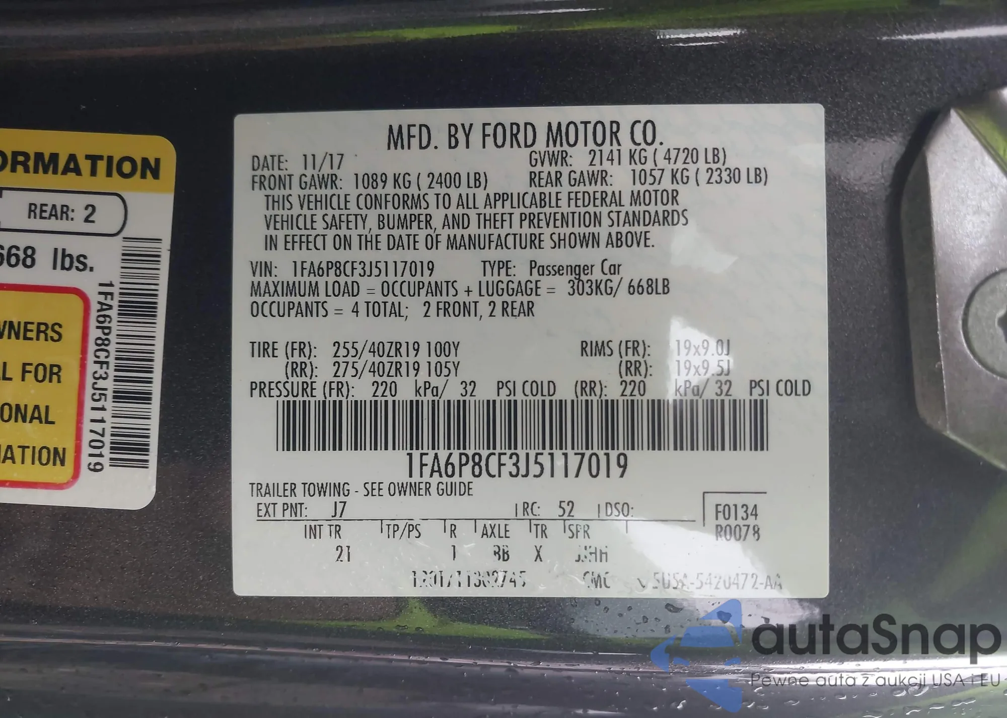 • VIN 1FA6P8CF3J5117019