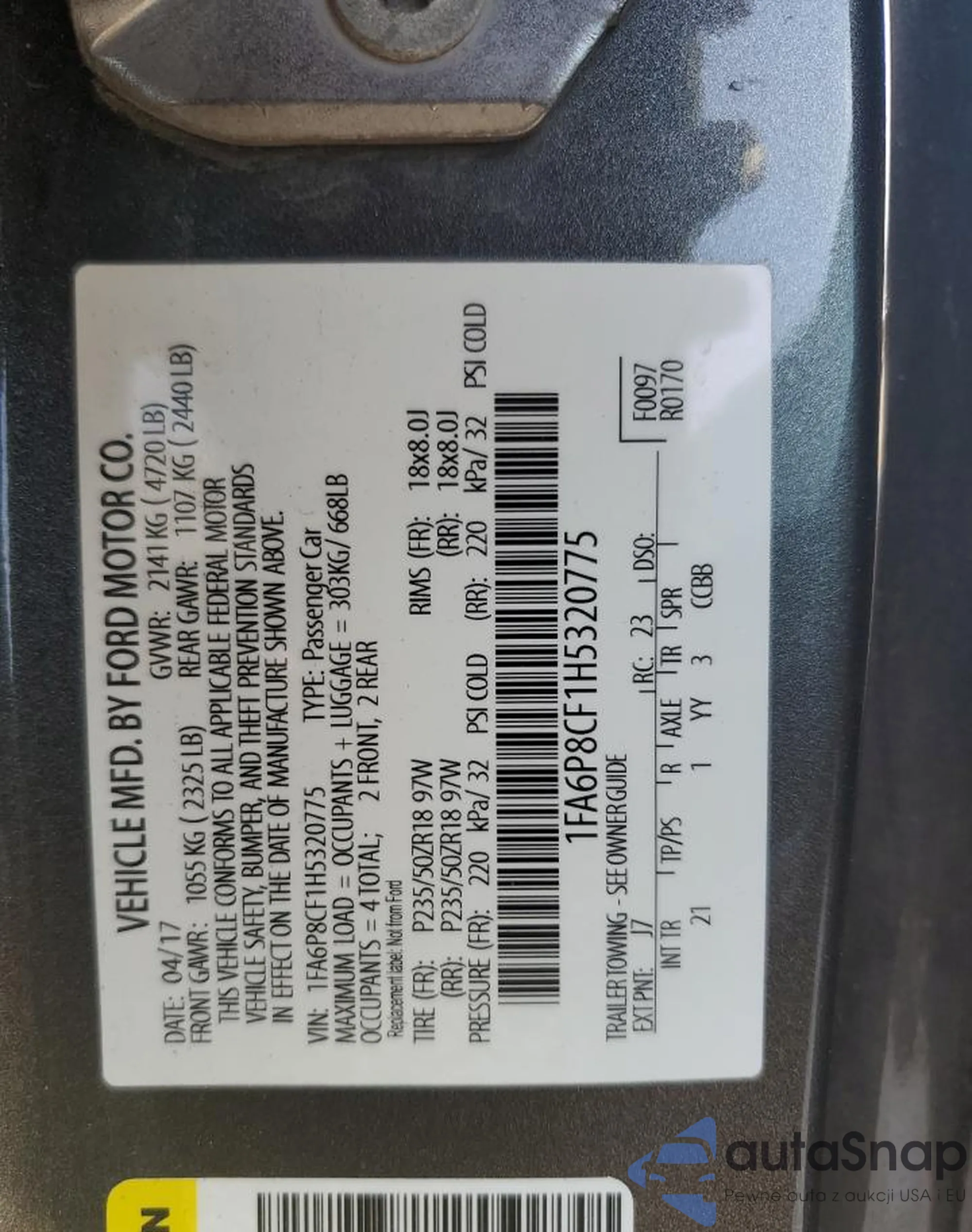 • VIN 1FA6P8CF1H5320775