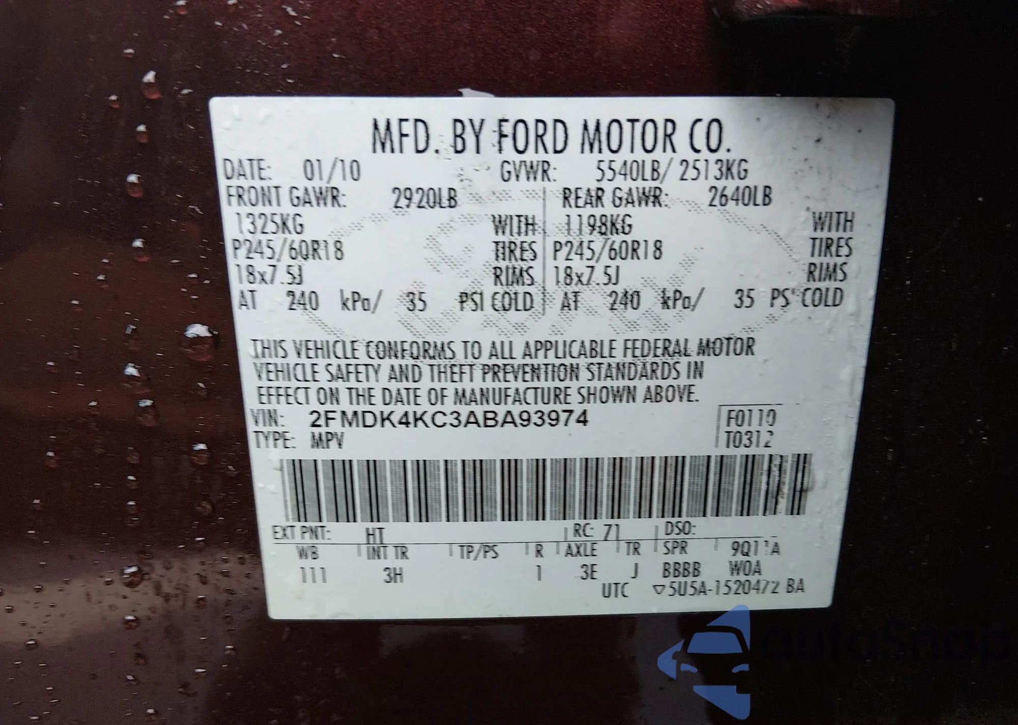 • VIN 2FMDK4KC3ABA93974