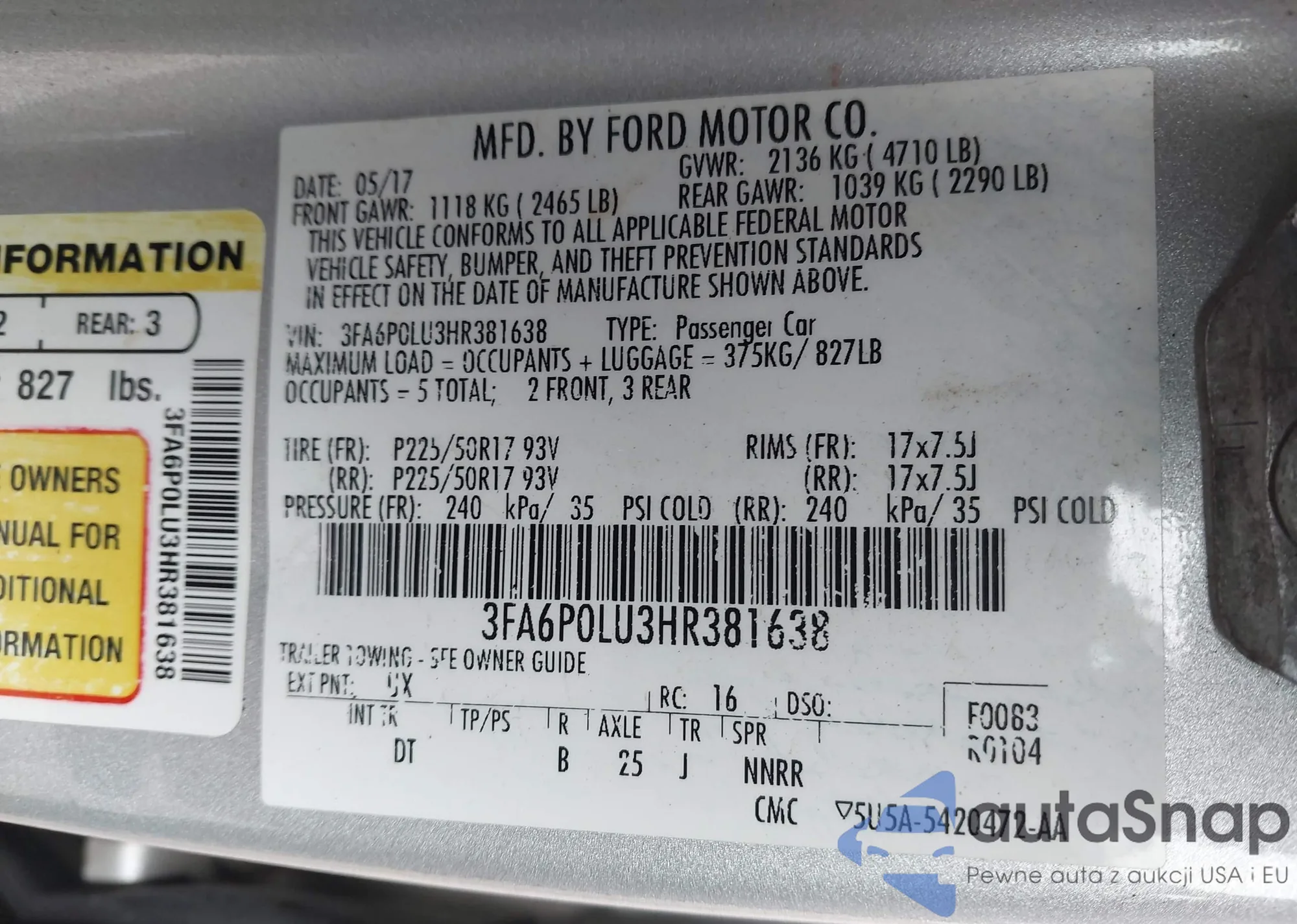• VIN 3FA6P0LU3HR381638