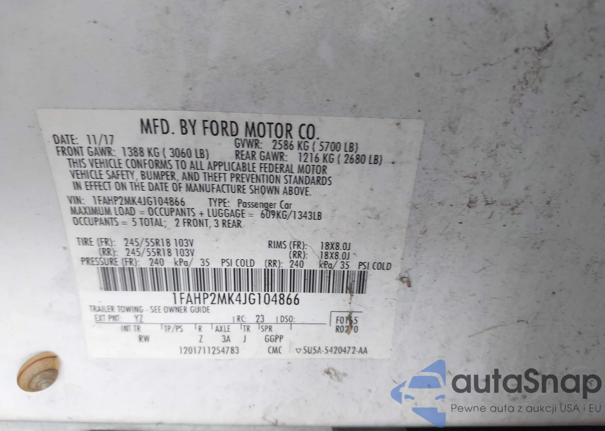 LOT: 42447228 VIN: 1FAHP2MK4JG104866