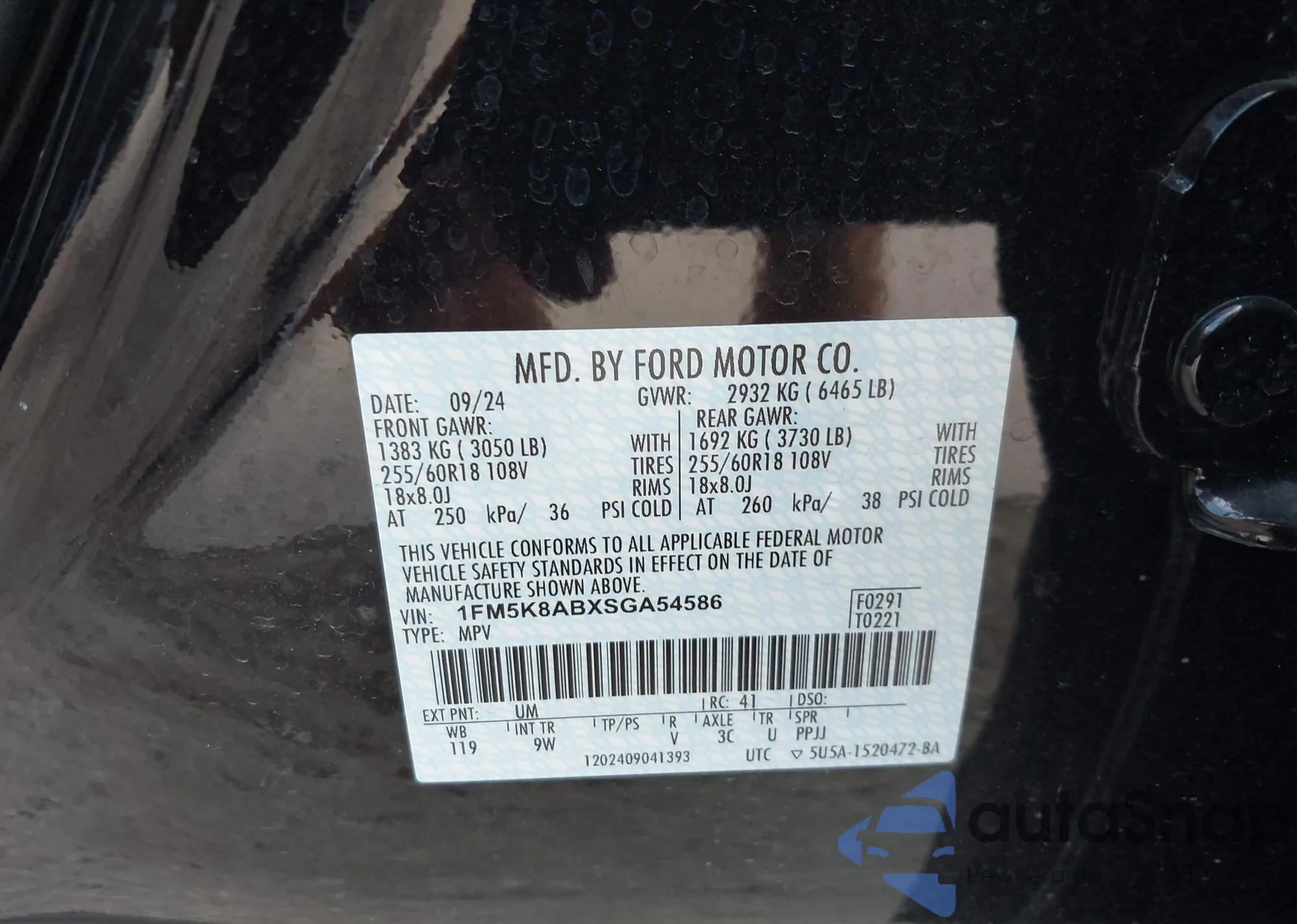 • VIN 1FM5K8AB5MGA42430