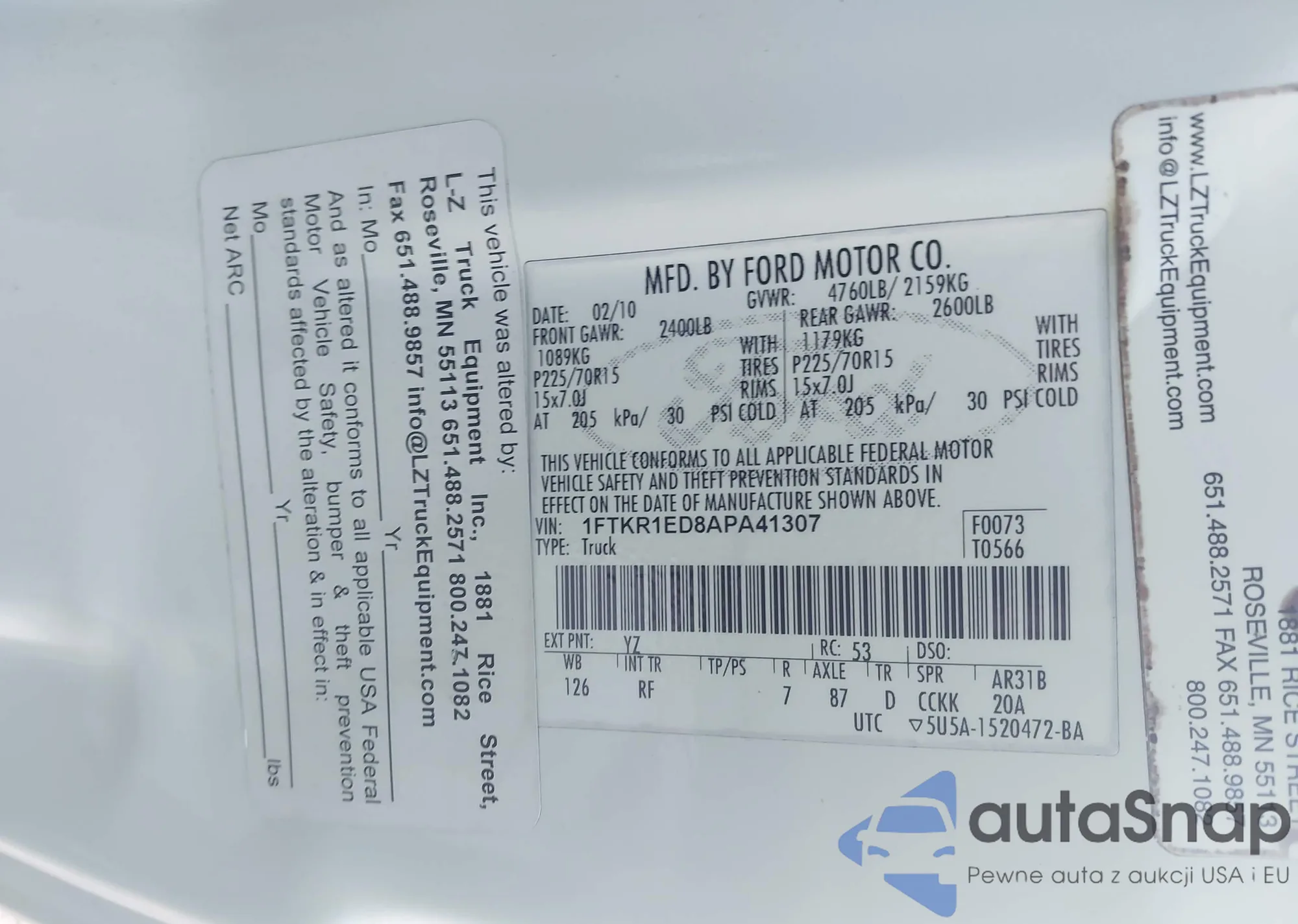 LOT: 44127159 VIN: 1FTYR44U58PA53521