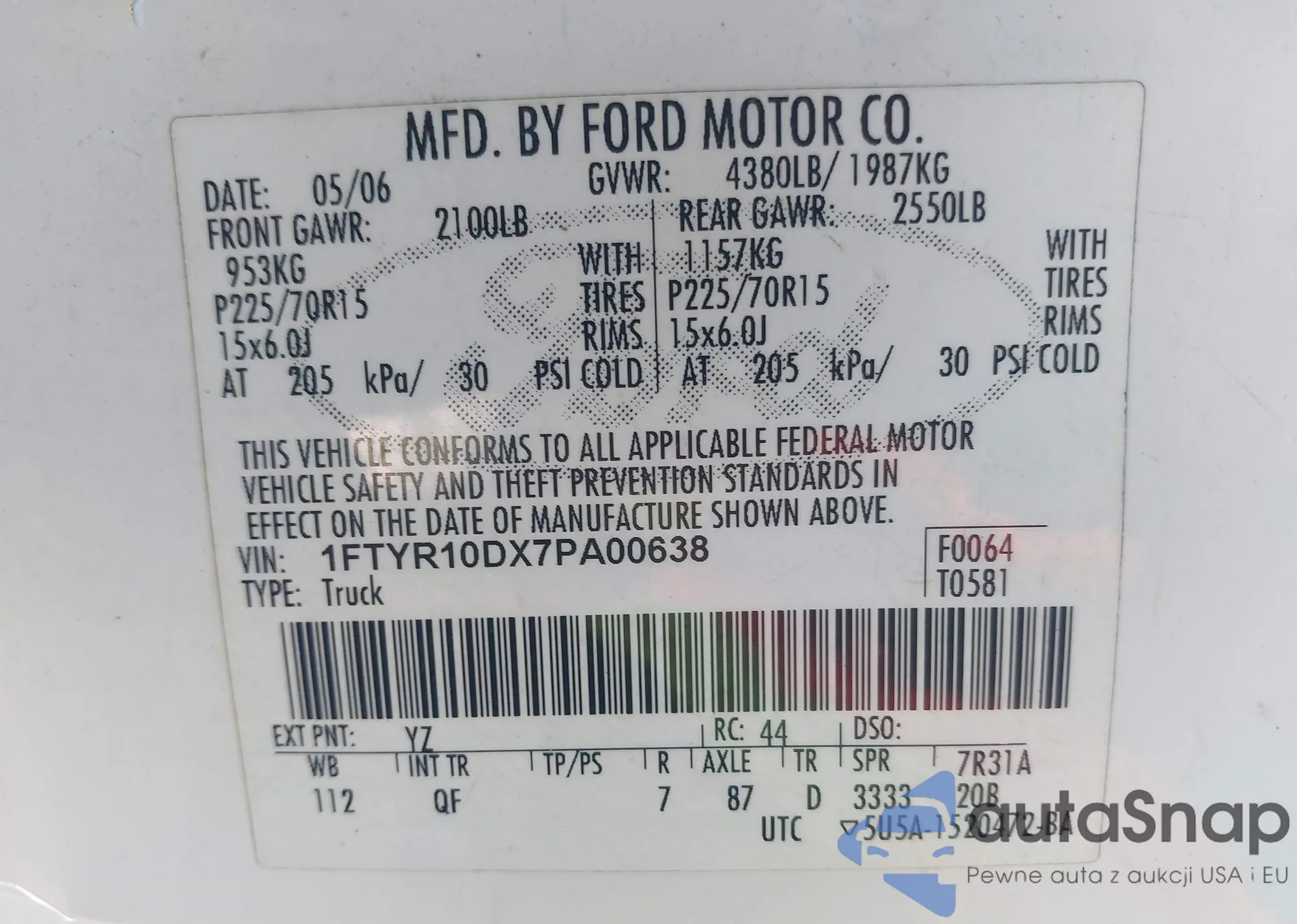 • VIN 1FTYR10DX7PA00638