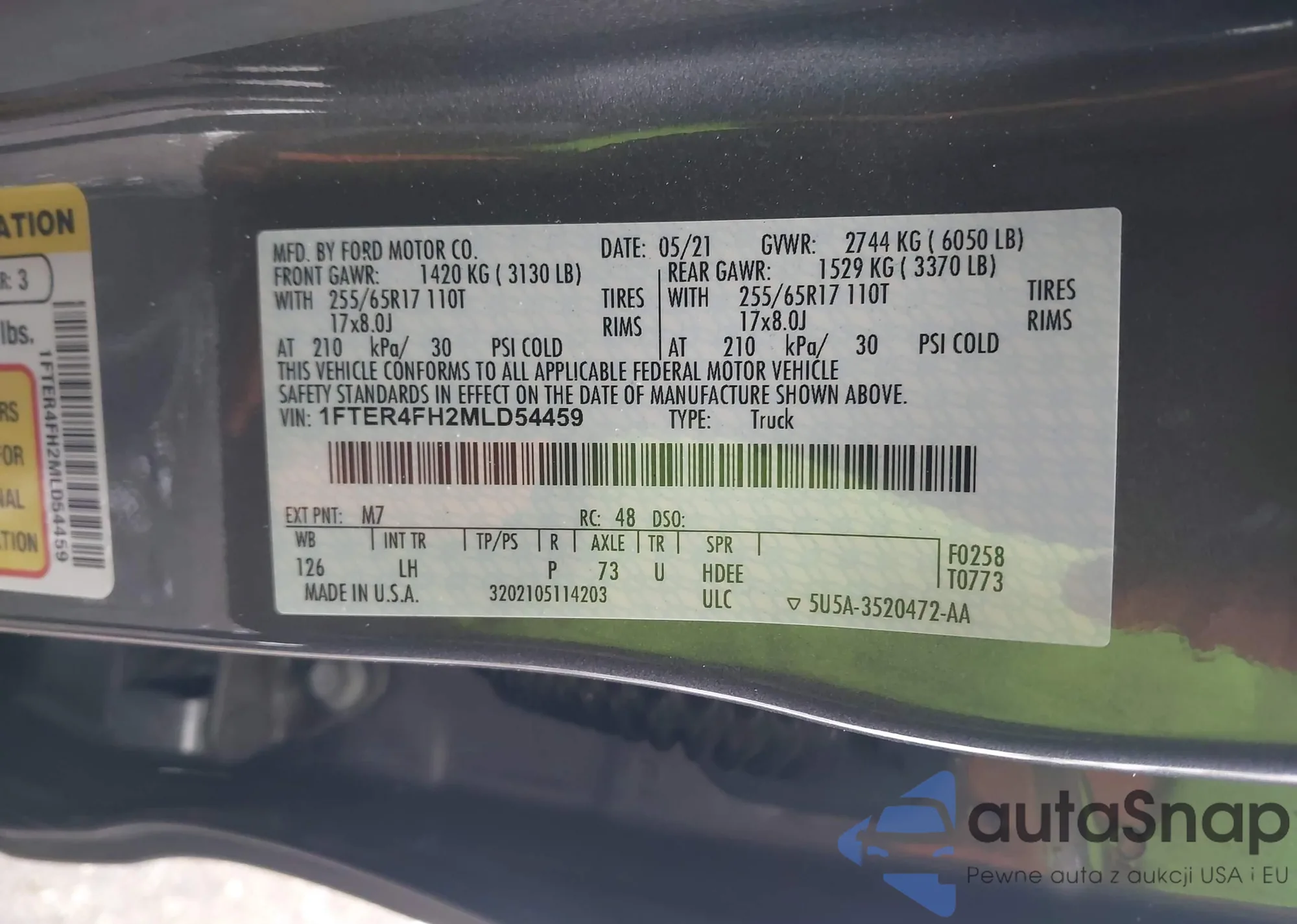 LOT: 44007458 VIN: 1FTER4FH0MLD95978