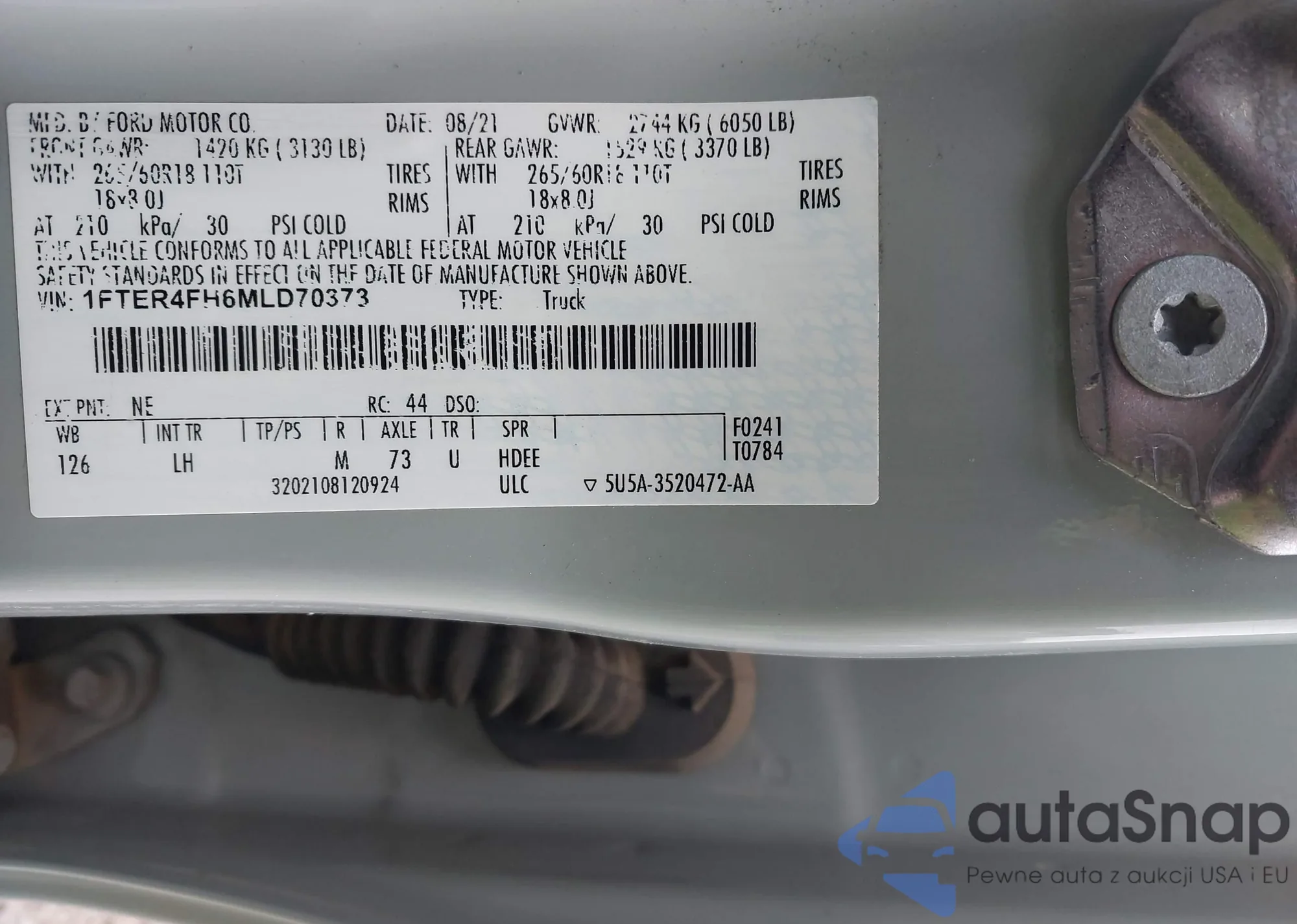 LOT: 43996824 VIN: 1FTER4FH6MLD70373
