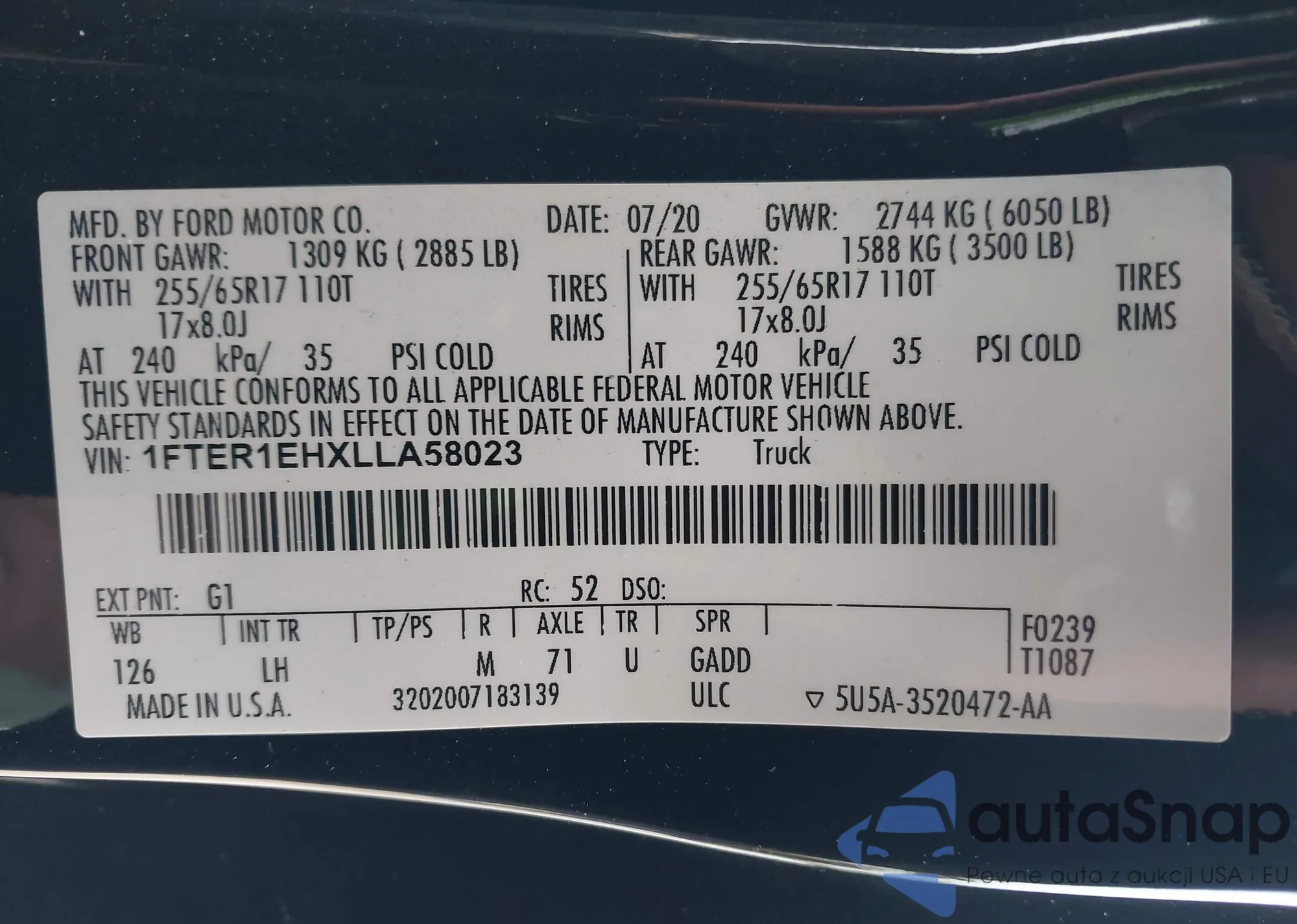 LOT: 44148852 VIN: 1FTER4FH5LLA32946