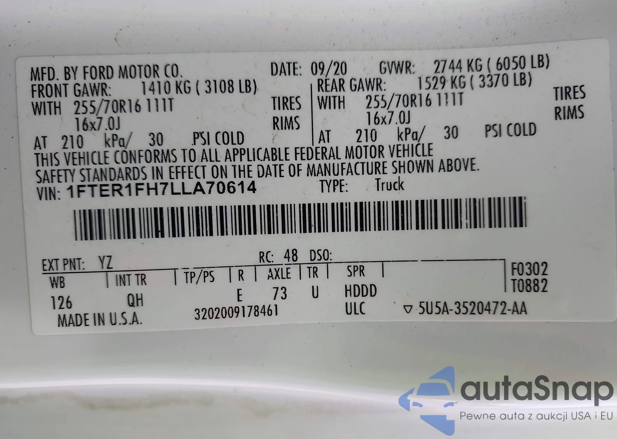 • VIN 1FTER1FH7LLA70614