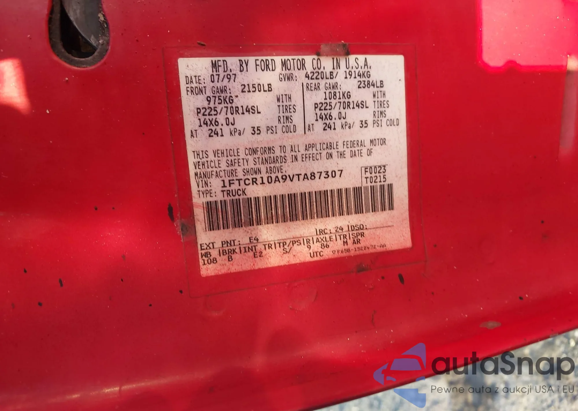 • VIN 1FTYR14V8YTA06997
