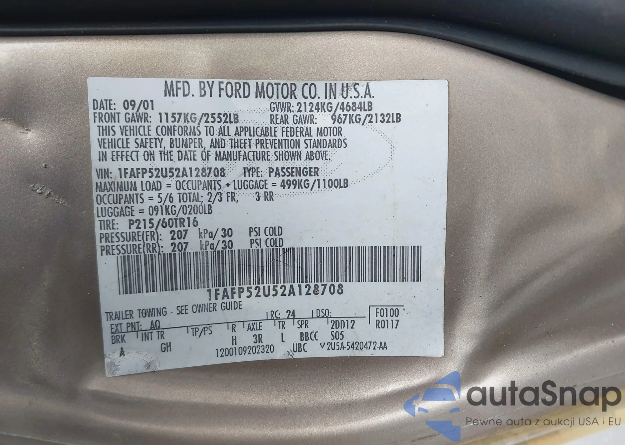 • VIN 1FAFP52U52A128708