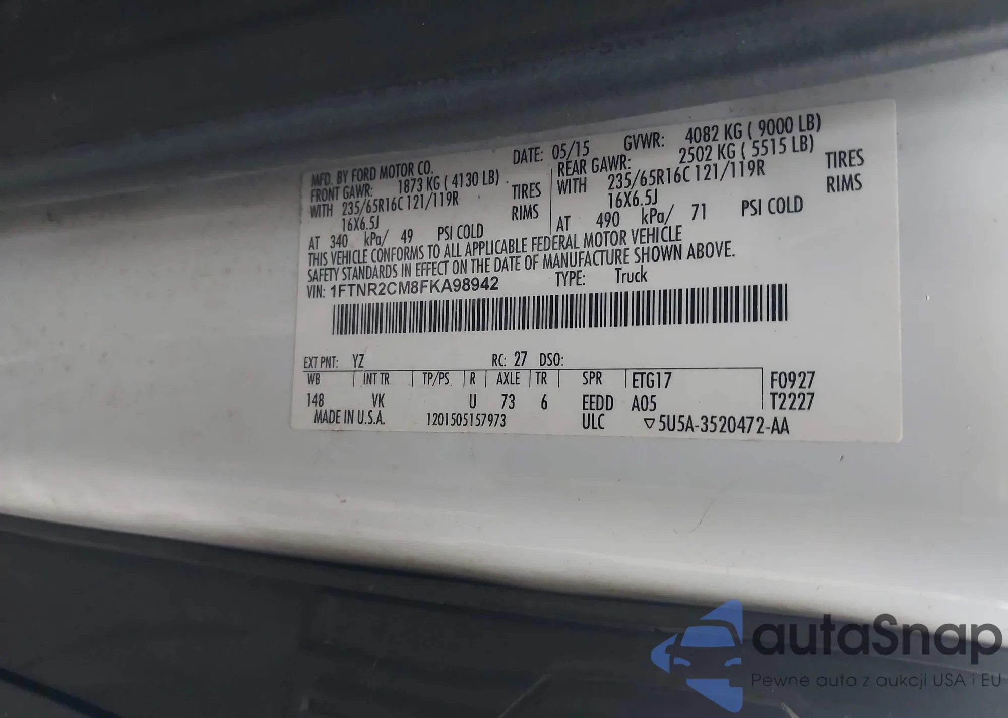 • VIN 1FTNR2CM8FKA98942
