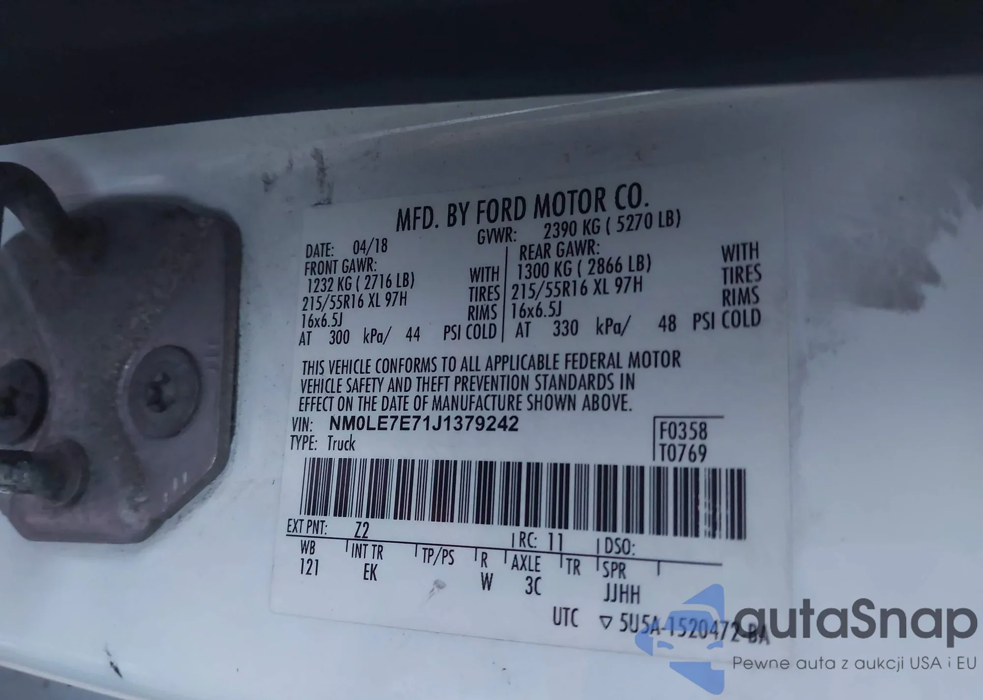 LOT: 43985602 VIN: NM0LE7E71J1379242