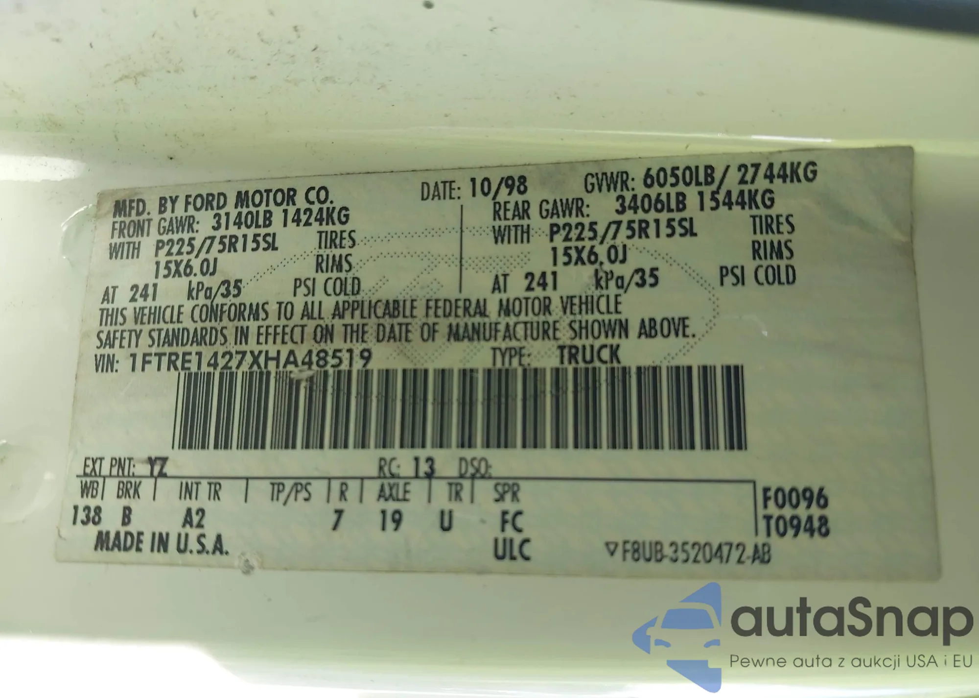 • VIN 1FTRE1427XHA48519