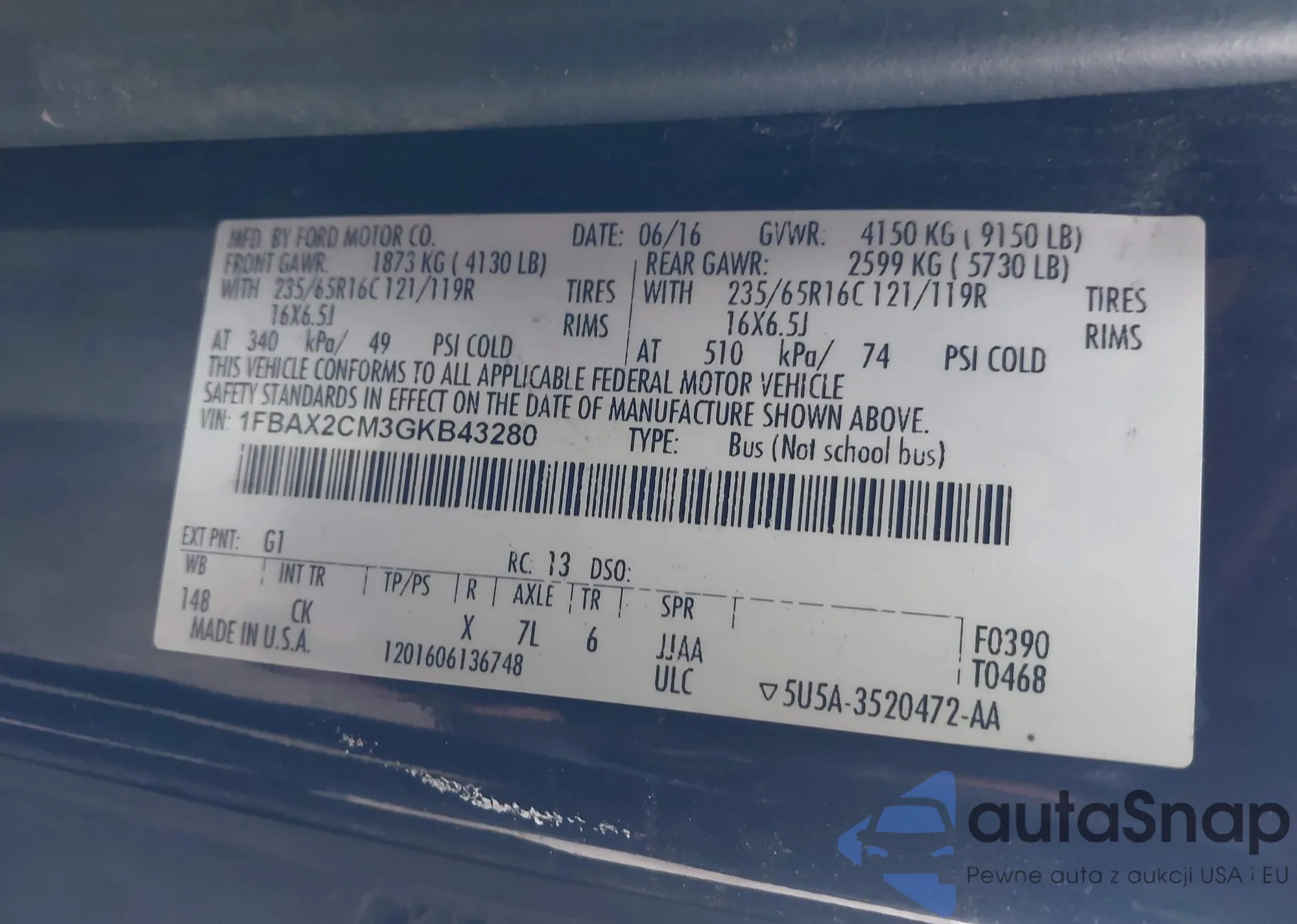 • VIN 1FBAX2CM3GKB43280
