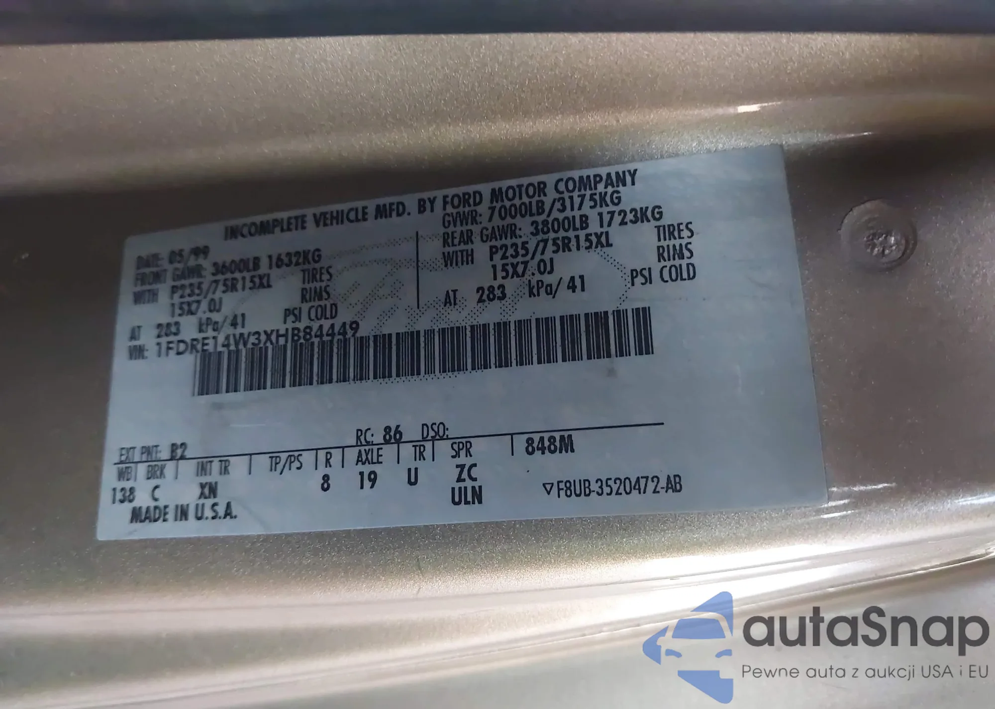 • VIN 1FDRE14W3XHB84449