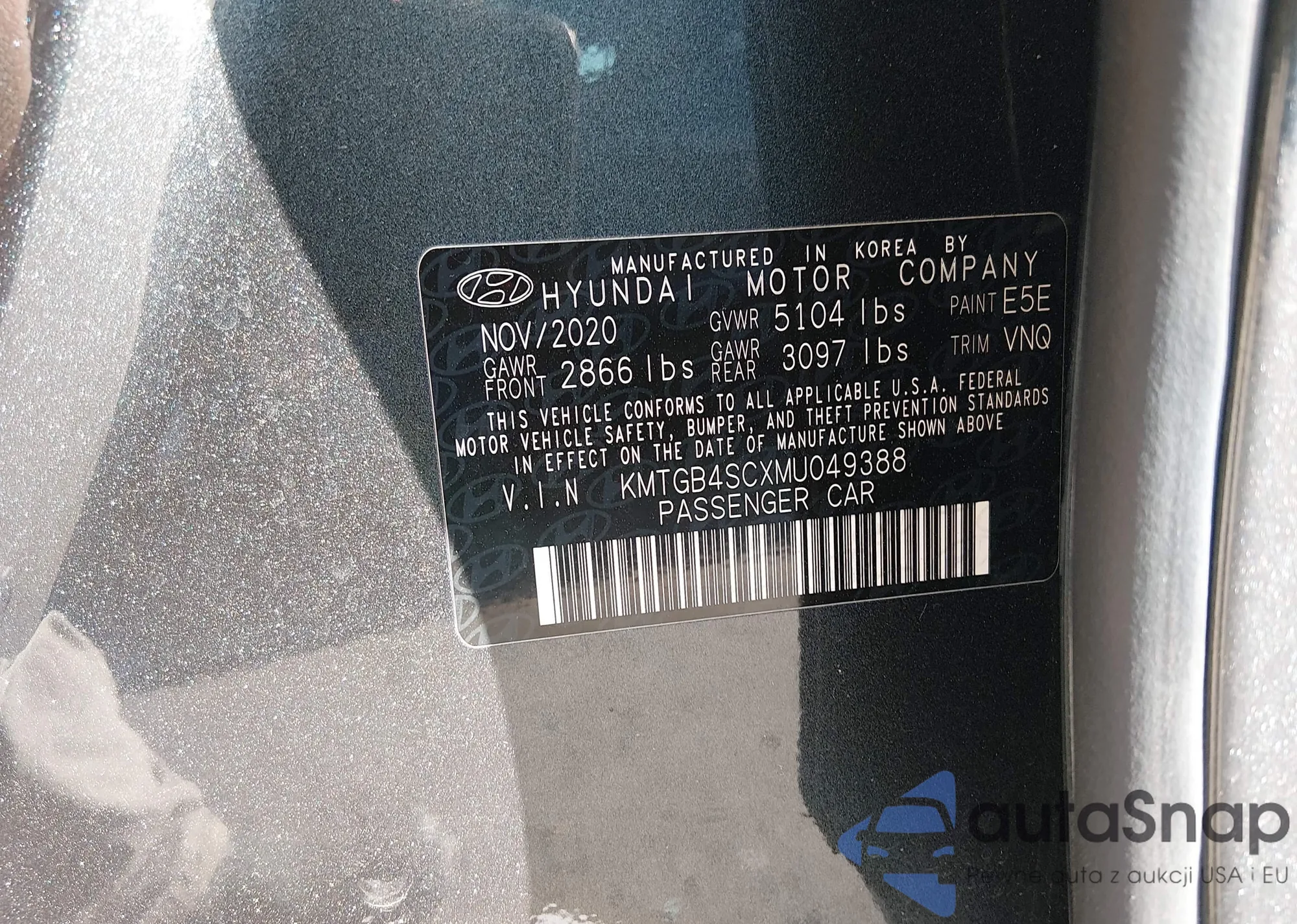 • VIN KMTGB4SCXMU049388
