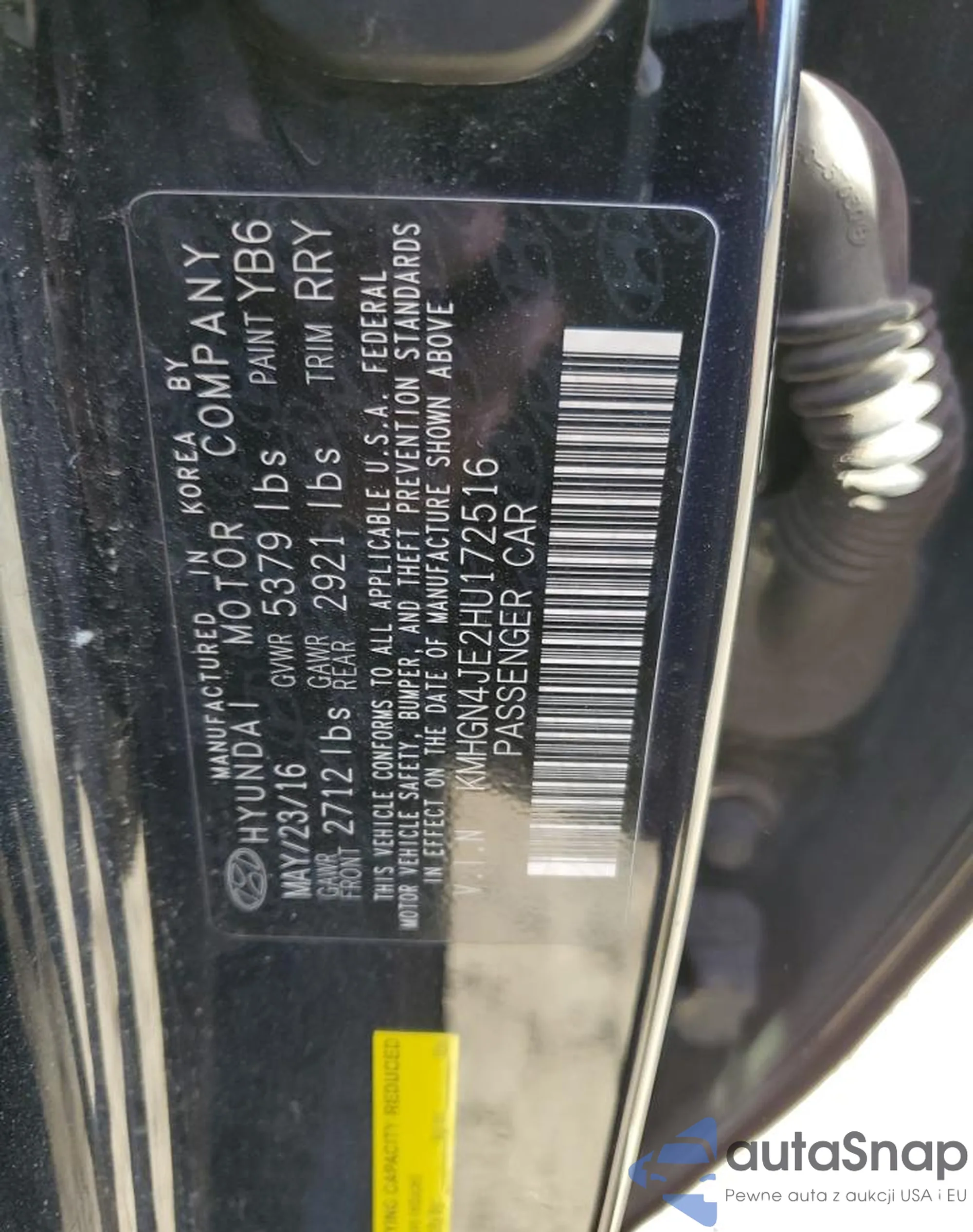 • VIN KMHGN4JE2HU172516