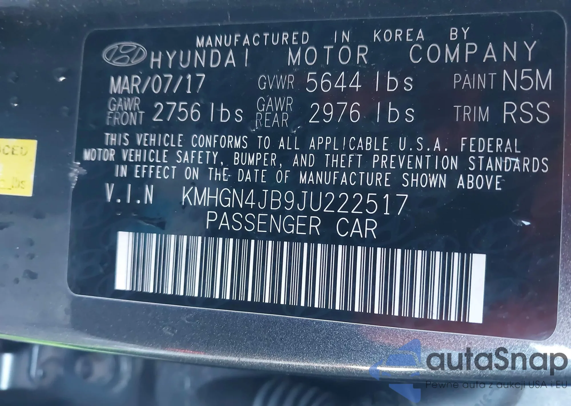 • VIN KMHGN4JB9JU222517