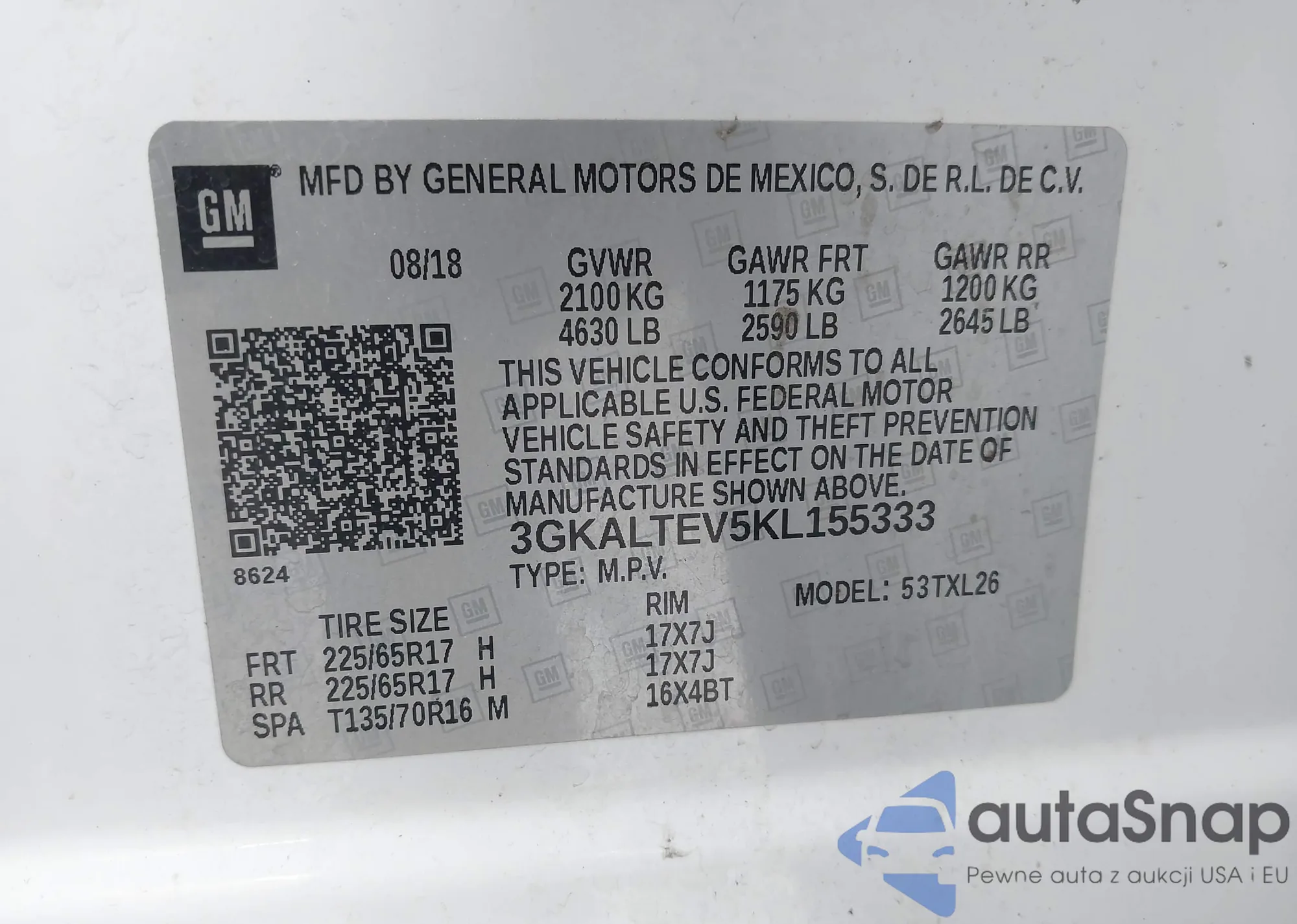 • VIN 3GKALTEV5KL155333