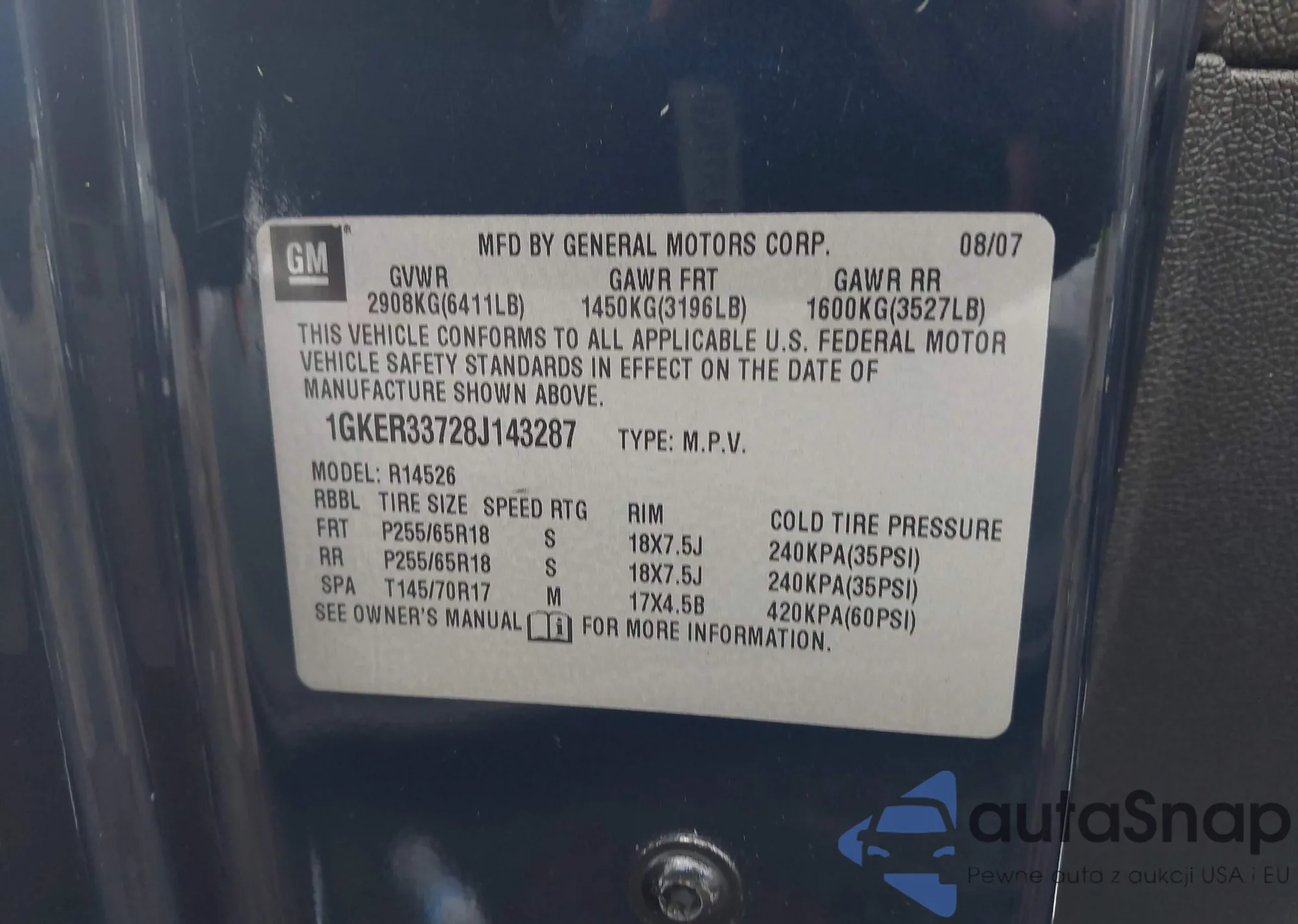 LOT: 43941710 VIN: 1GKER13758J148732