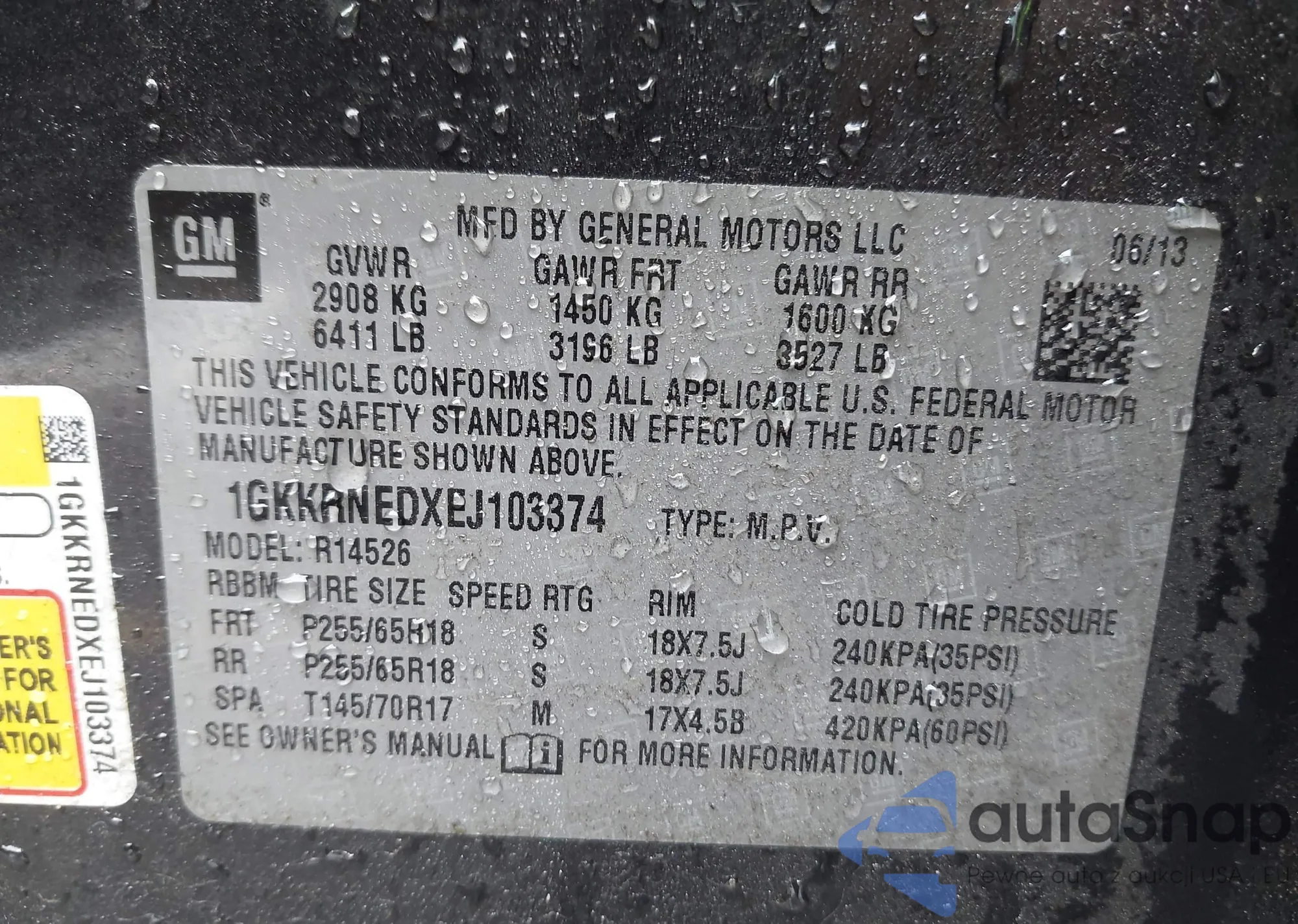 • VIN 1GKKRNEDXEJ103374