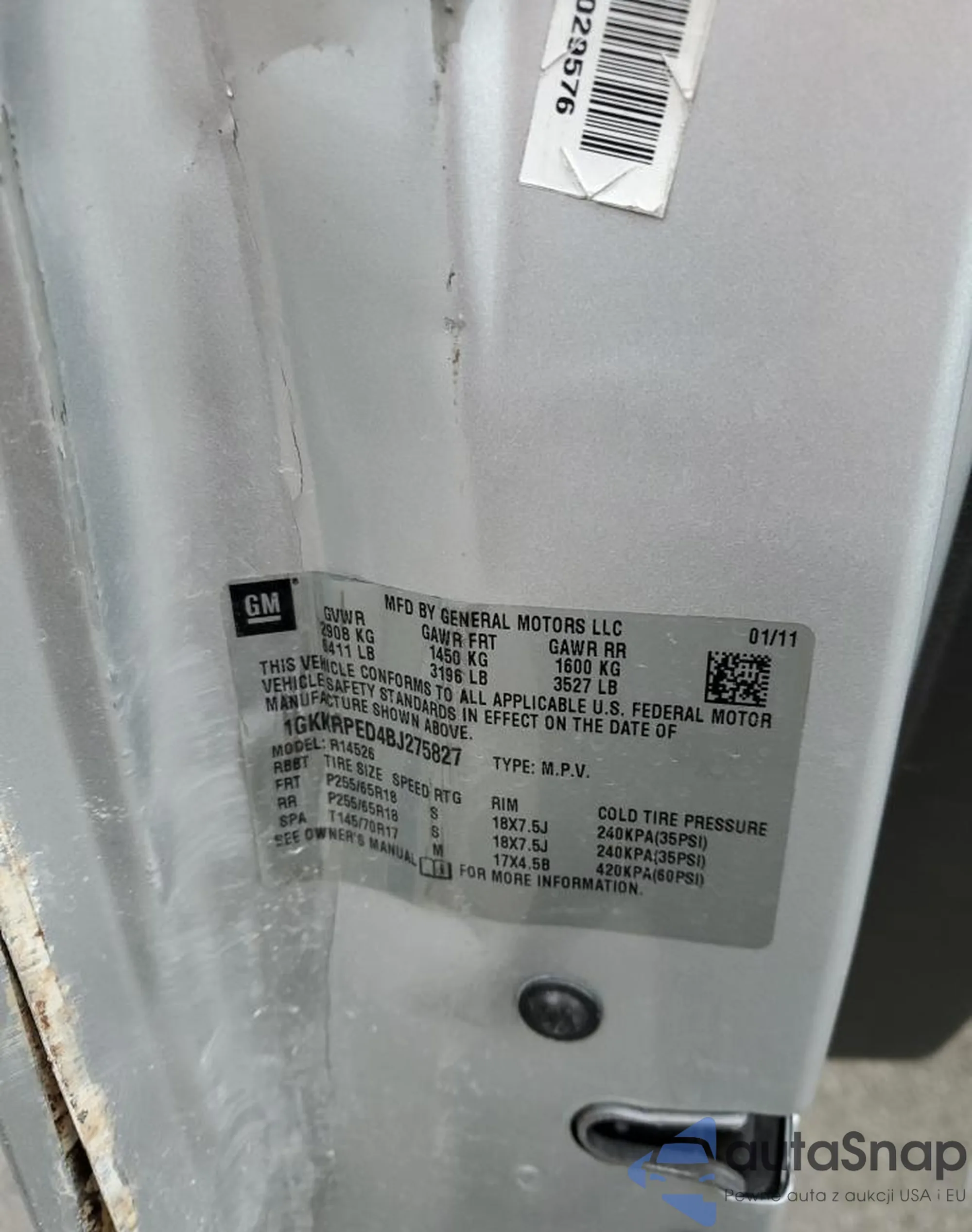 LOT: 91669965 VIN: 1GKKRPED4BJ275827
