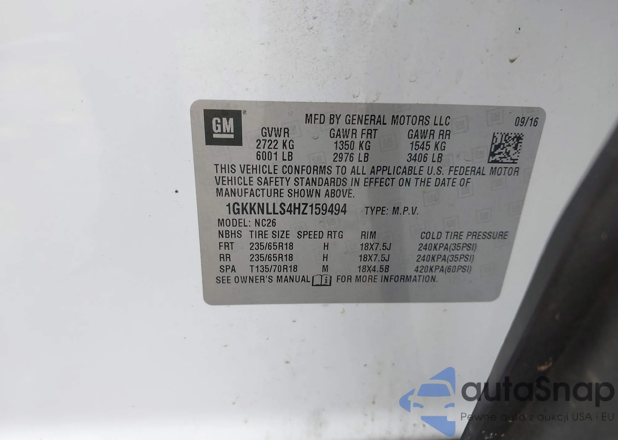 LOT: 77178495 VIN: 1GKKNRLA7JZ149865