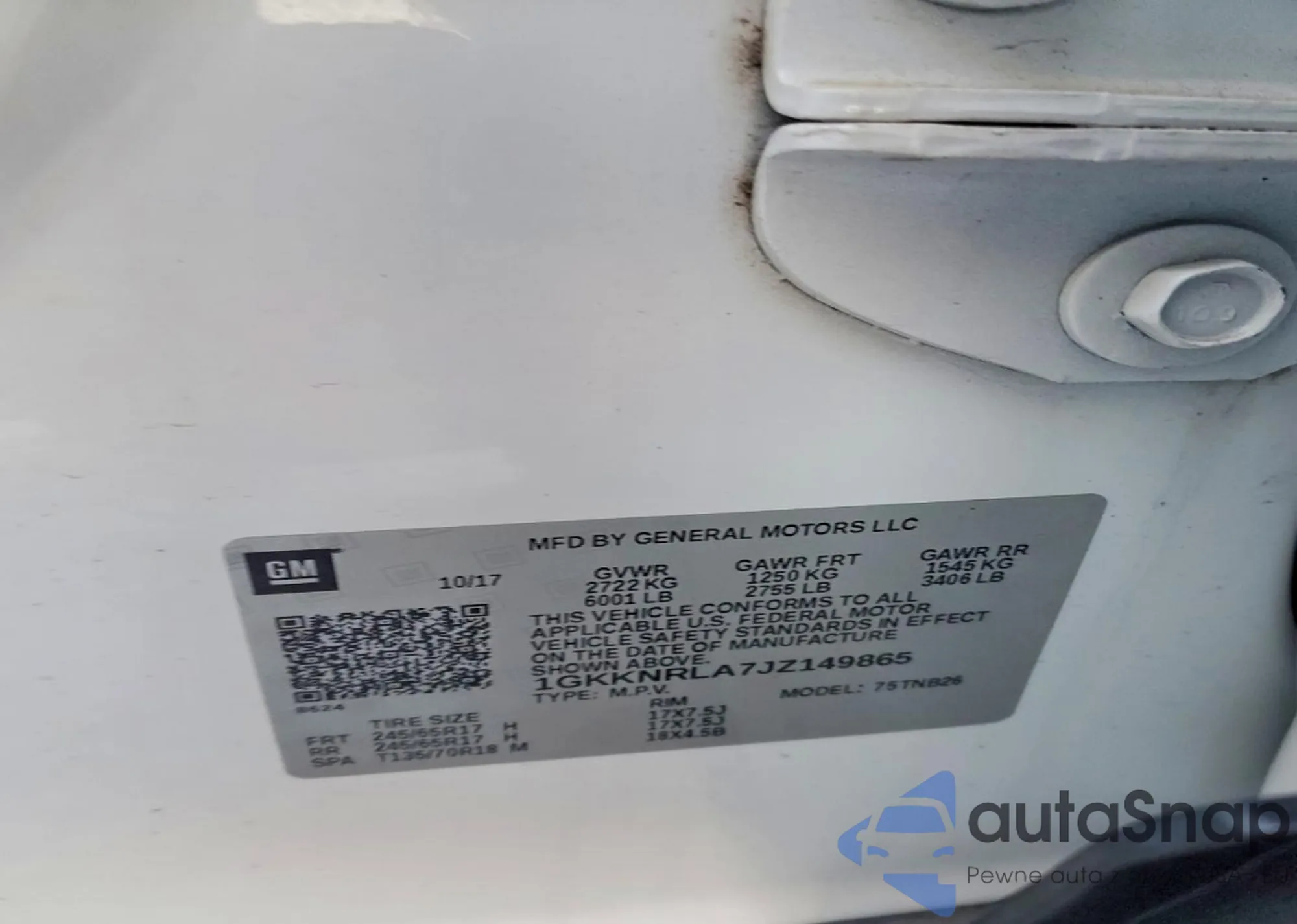 • VIN 1GKKNRLA7JZ149865