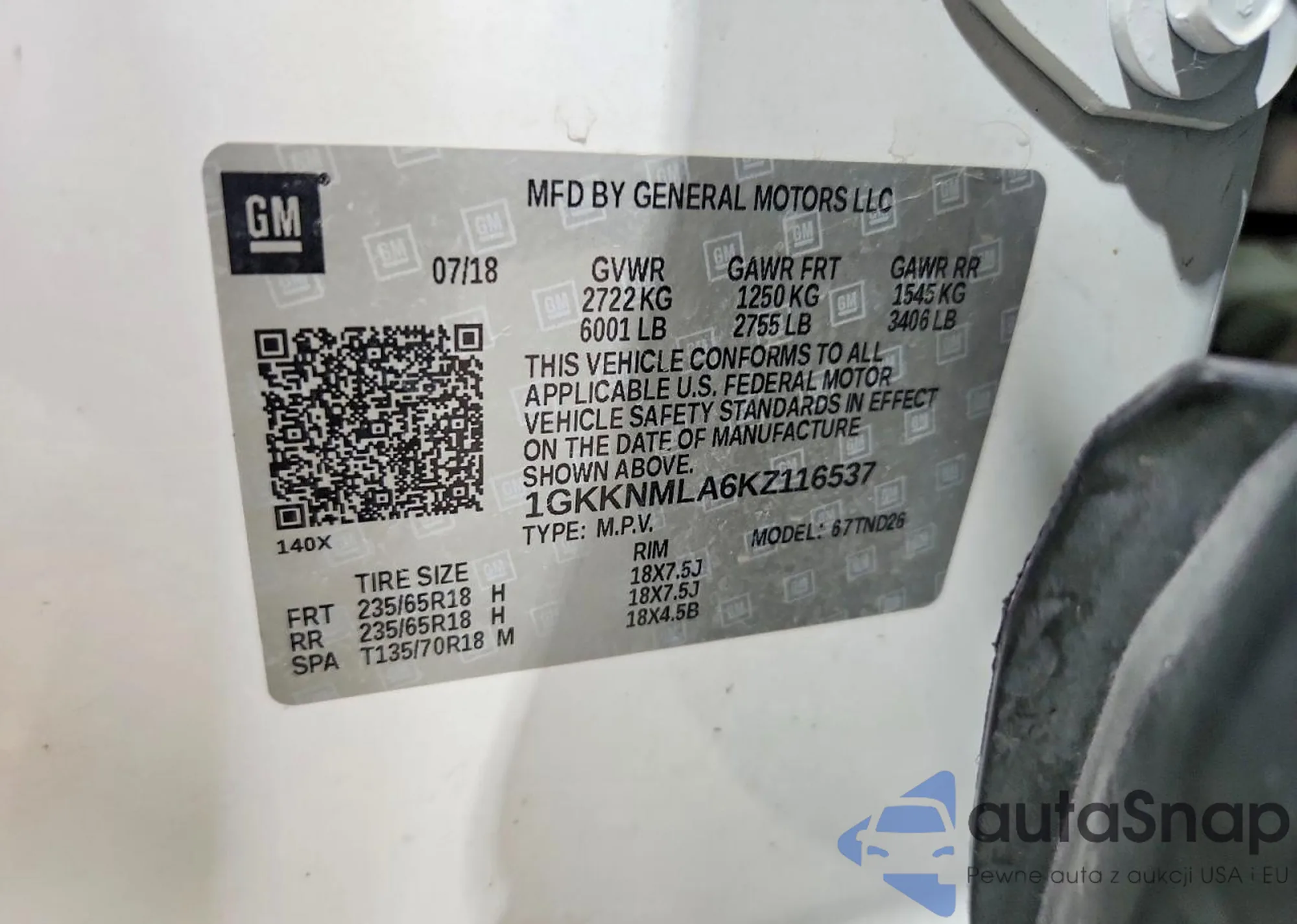 LOT: 79380475 VIN: 1GKKNMLA6KZ116537