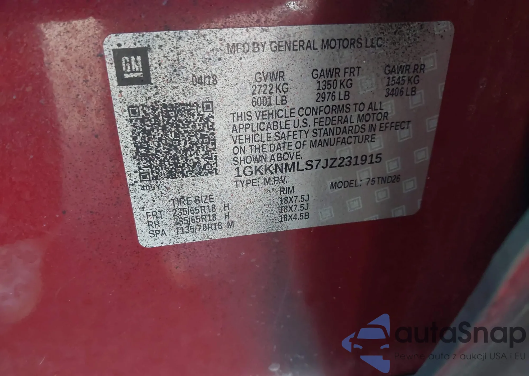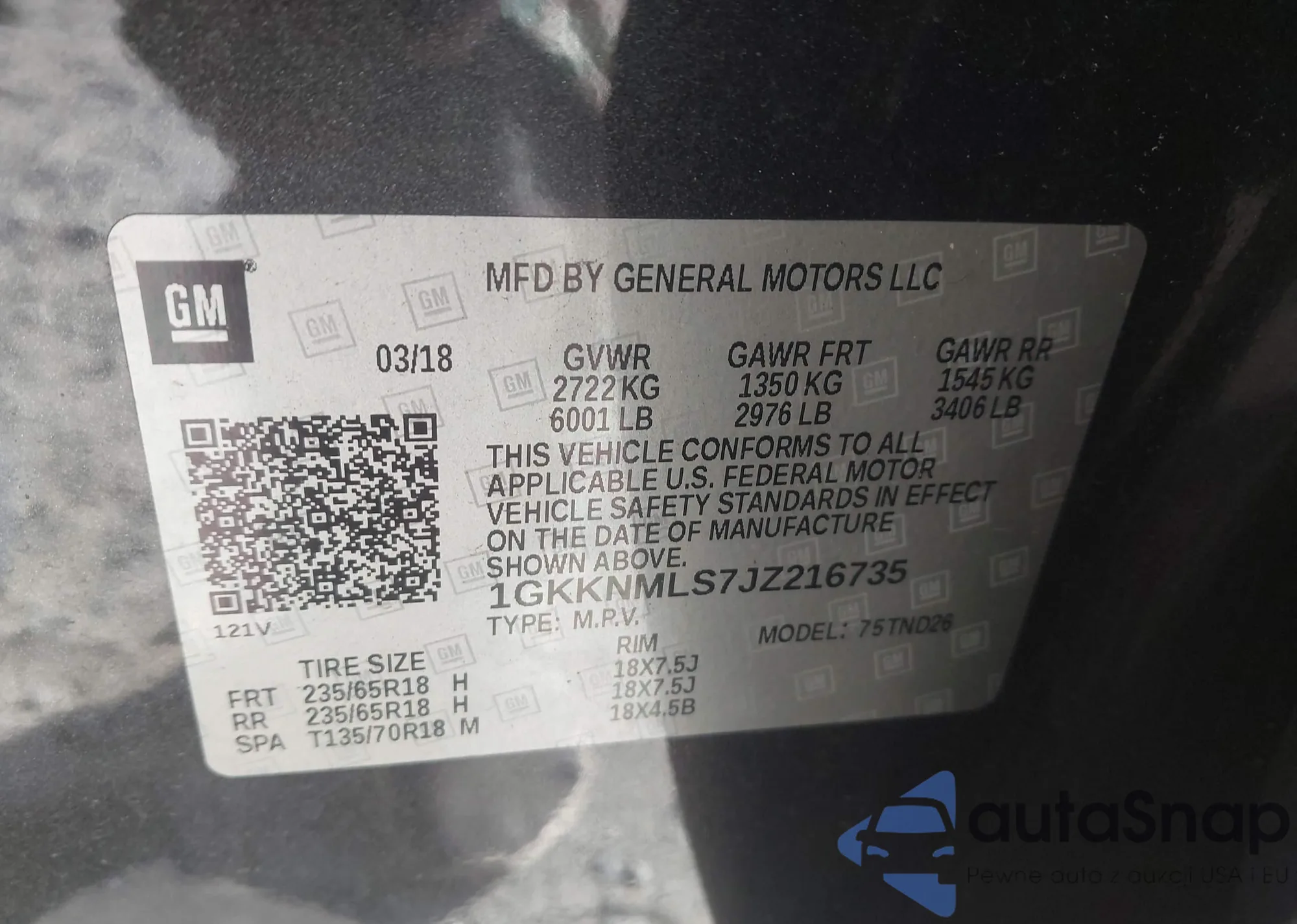 • VIN 1GKKNMLS7JZ216735