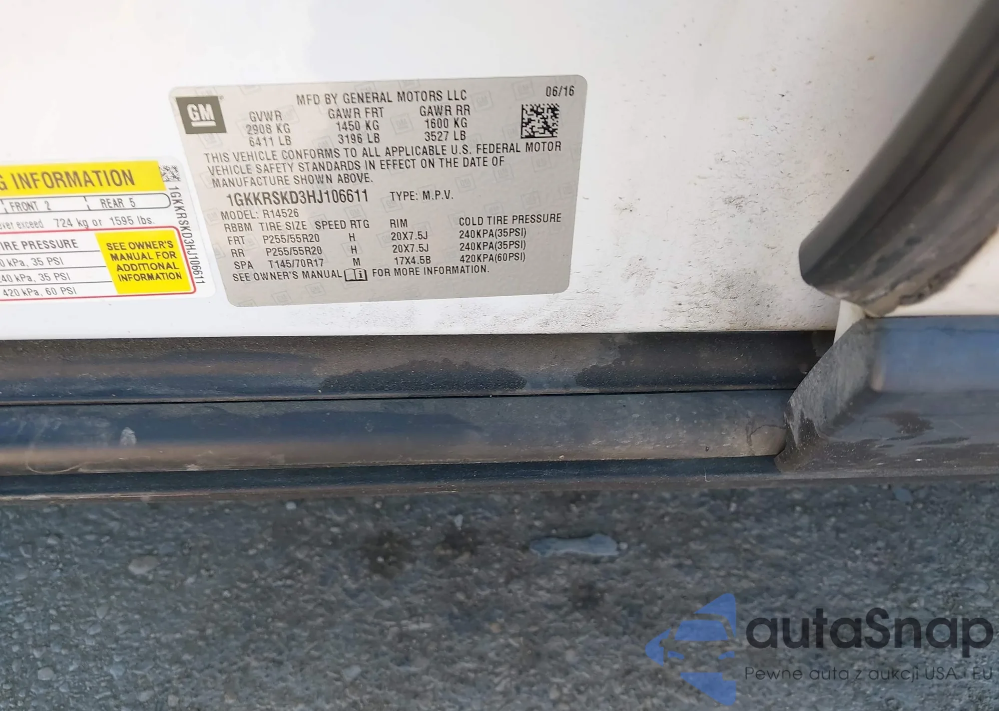 LOT: 44031238 VIN: 1GKKRSKD3HJ106611