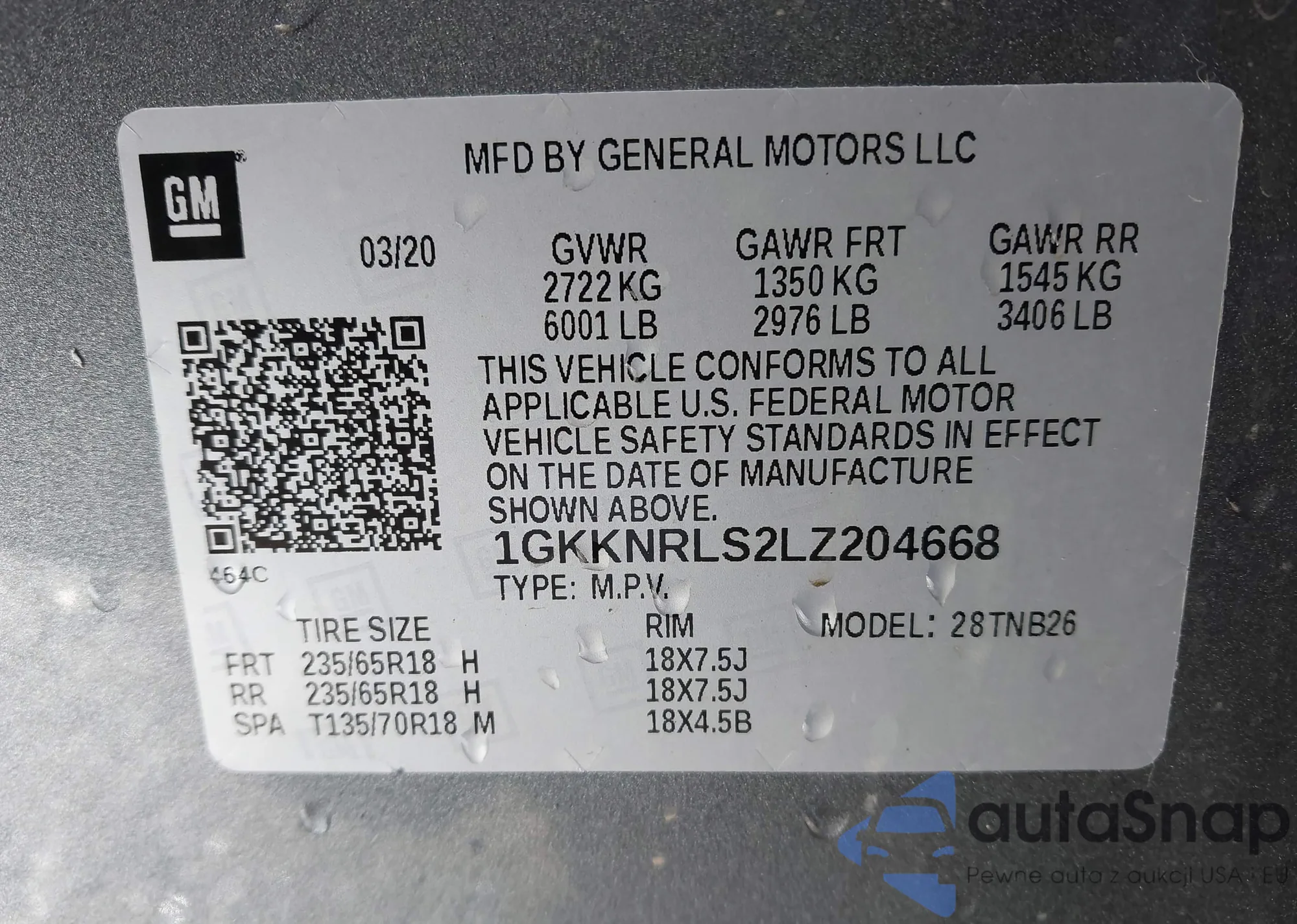 LOT: 44065136 VIN: 1GKKNRLS2LZ204668