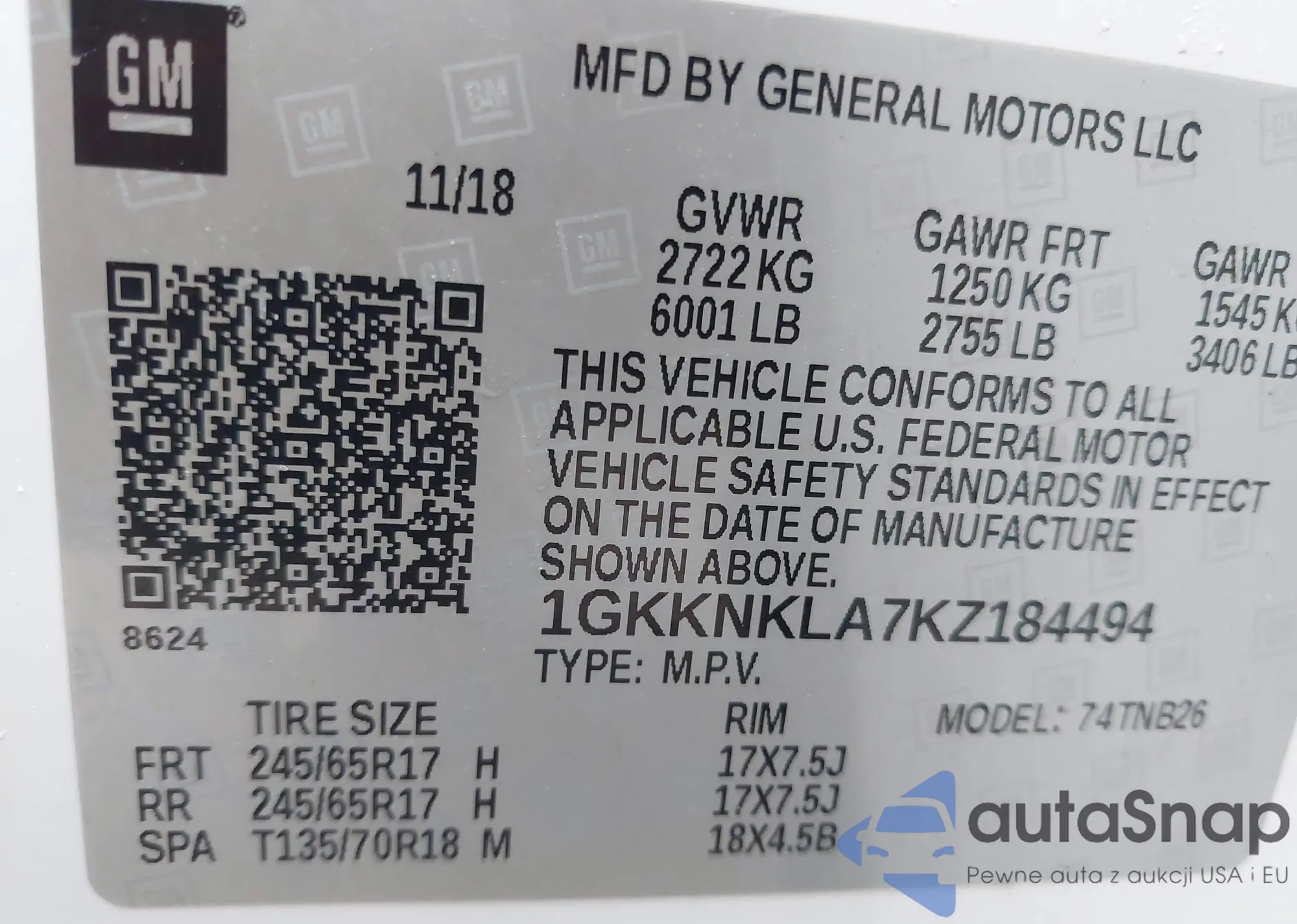LOT: 44067204 VIN: 1GKKNKLA7KZ184494
