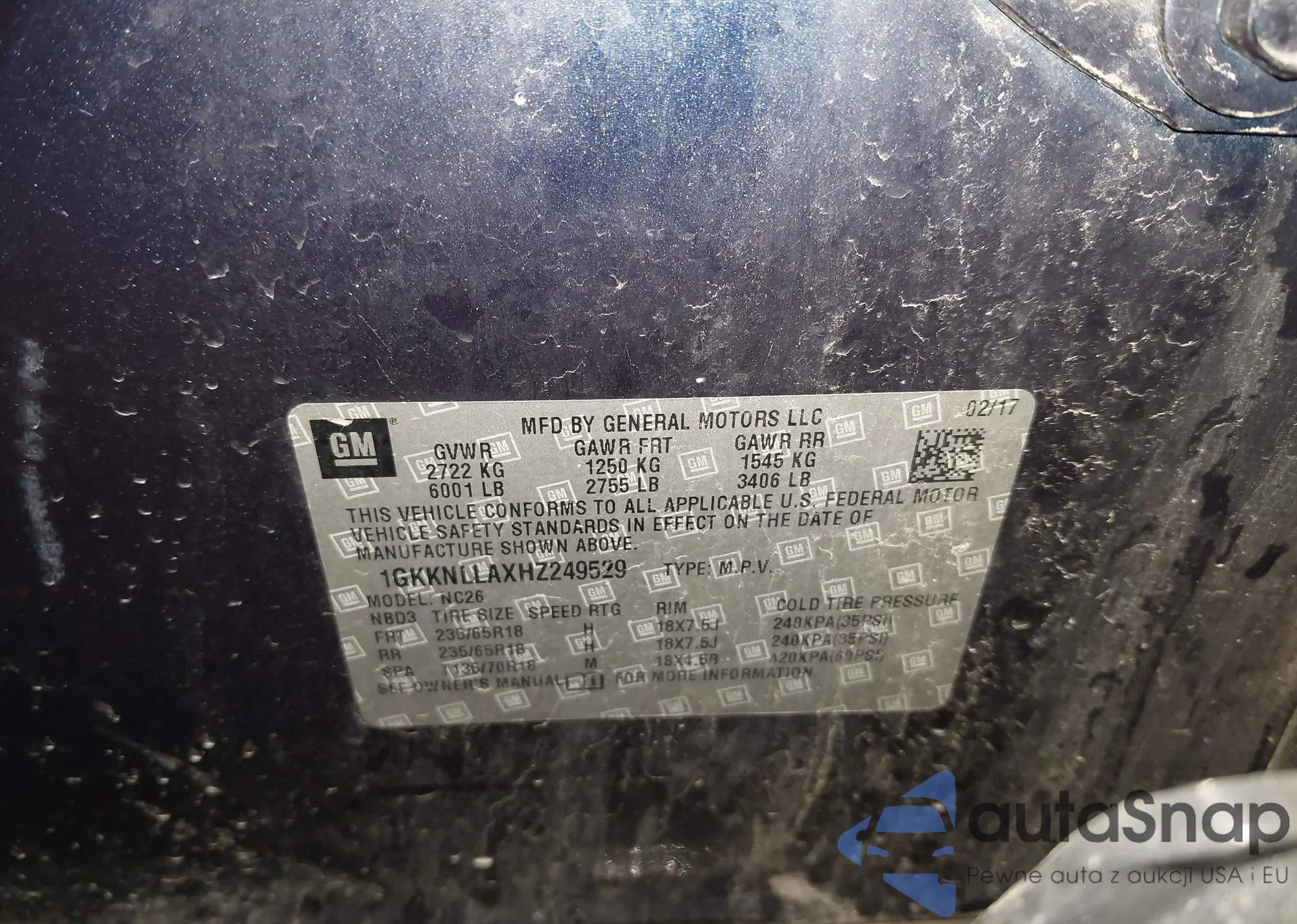 LOT: 44170737 VIN: 1GKKNLLAXHZ249529