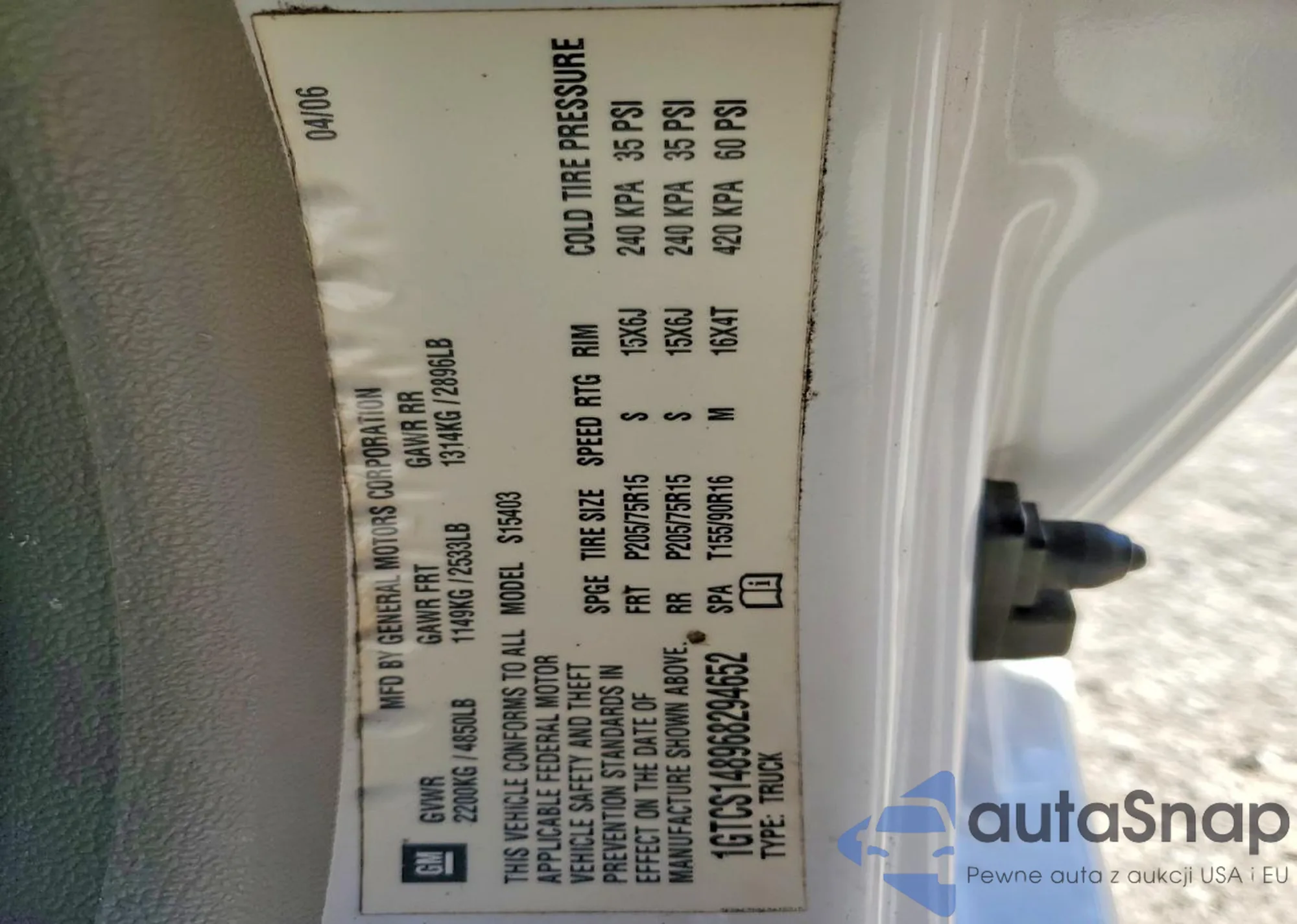 • VIN 1GTCS148968294652