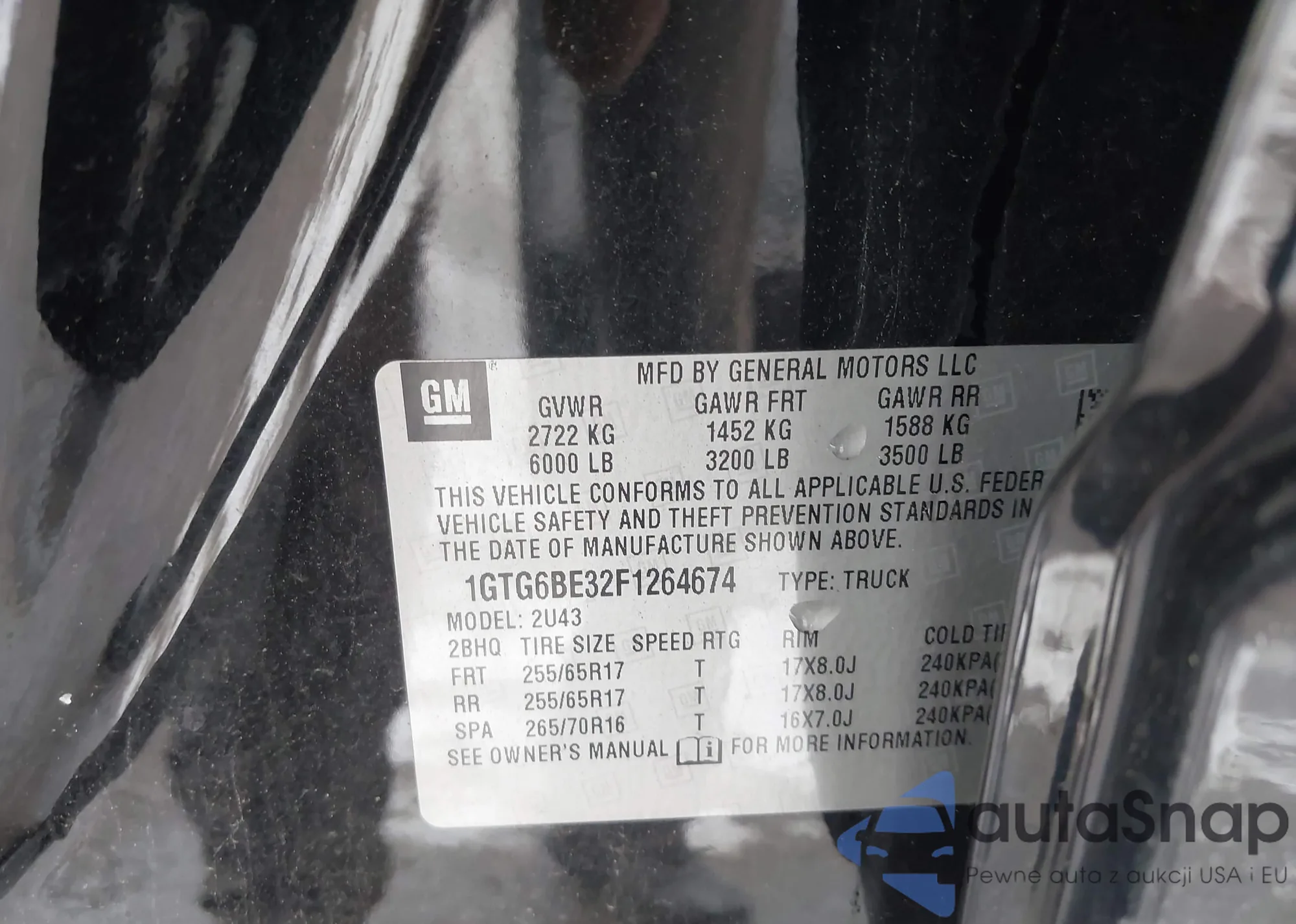 LOT: 43900765 VIN: 1GTG6BE34F1256303